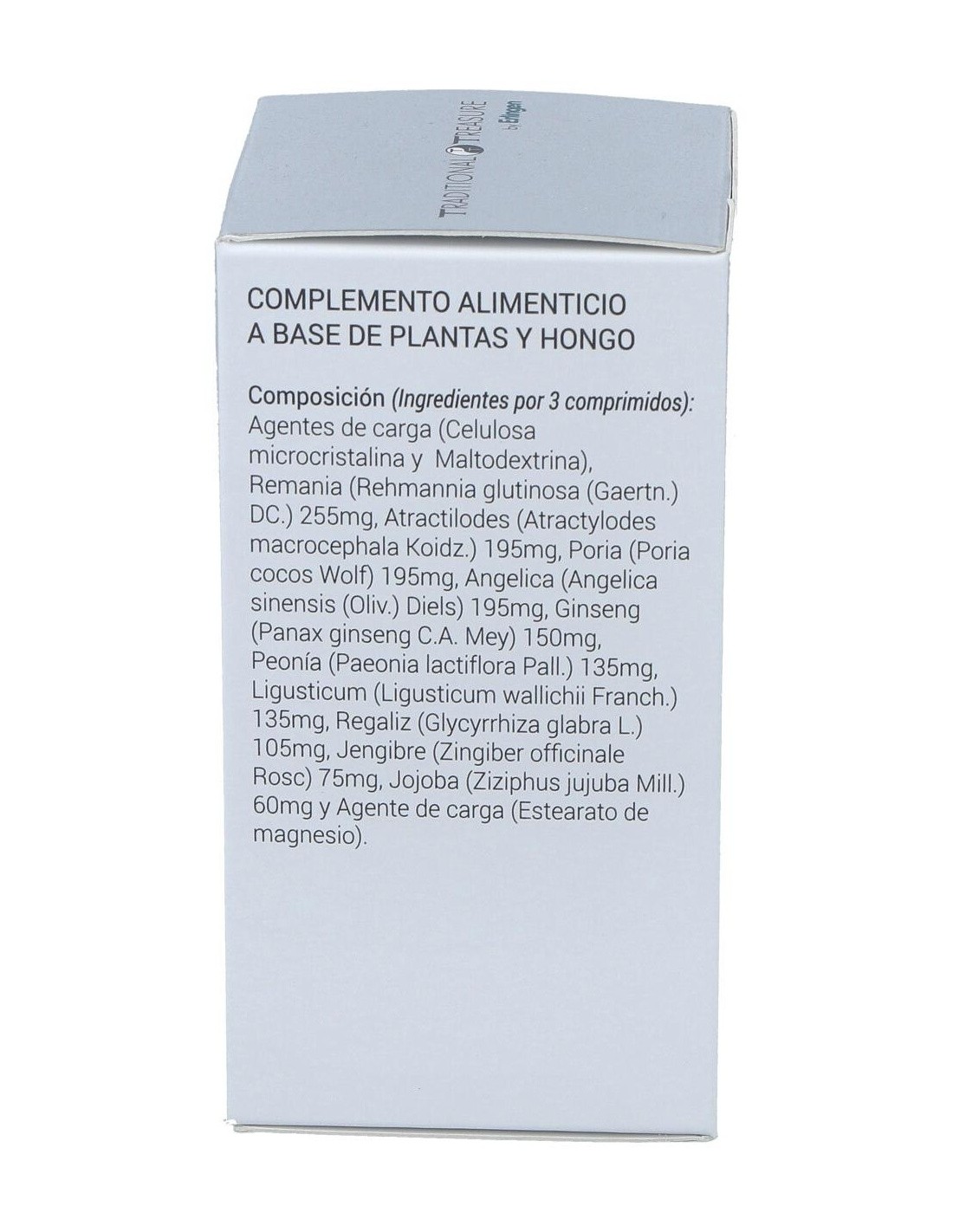 Remania (Rehmannia glutinosa (Gaertn.) DC.), Atractilodes (Atractylodes macrocephala Koidz.), Poria (Poria cocos Wolf), Angelica (Angelica sinensis (Oliv.) Diels), Ginseng (Panax ginseng C.) A. Mey), Peonía (Paeonia lactiflora Pall.), Ligusticum (Franch. Ligusticum wallichii.), Regaliz (Glycyrrhiza glabra L.), Jengibre (Zingiber officinale Rosc), Jojoba (Ziziphus jujuba Mill.).