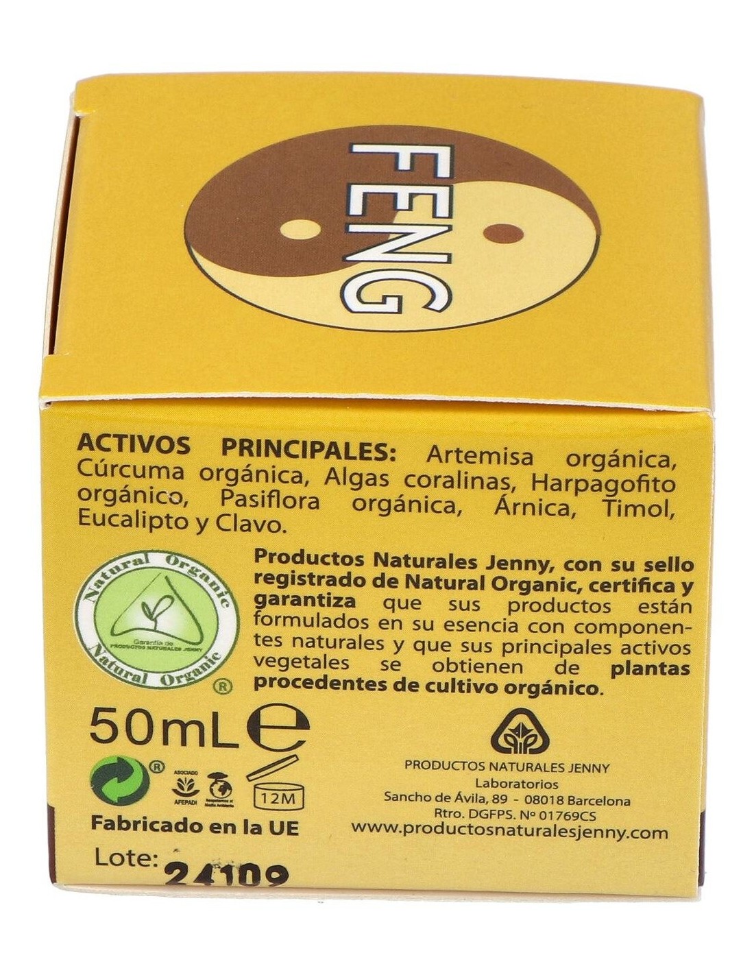 ARTEMISA ORGÁNICA, CÚRCUMA ORGÁNICA, ALGAS CORALINAS, HARPAGOFITO ORGÁNICO, PASIFLORA ORGÁNICA, ÁRNICA, EUCALIPTO Y CLAVO.