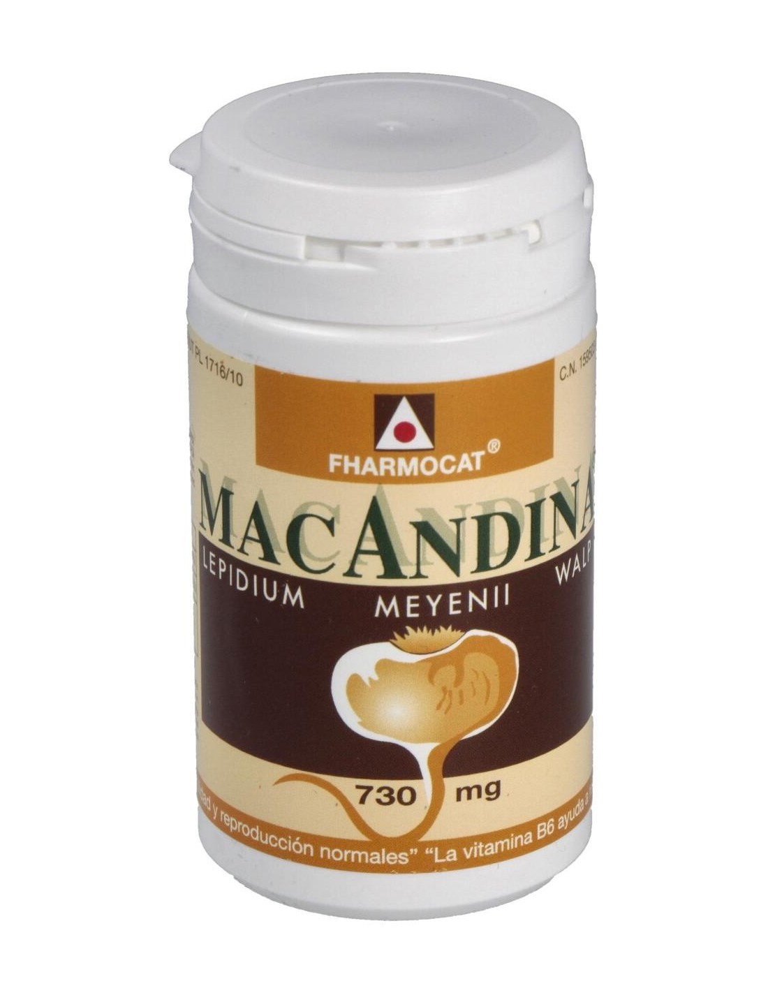 Maca Andina exto. seco (Lepidium Meyenii Walp) (raíz) (100% Pura. Esterilizada. máxima calidad) 500 mg: Cápsula: Gelatina 120 mg y Antiaglomerante: Estearato de magnesio (E- 470b) c.s.: Sulfato de zinc 9 mg y Clorhidrato de piridoxina (Vit. B6) 1,40 mg