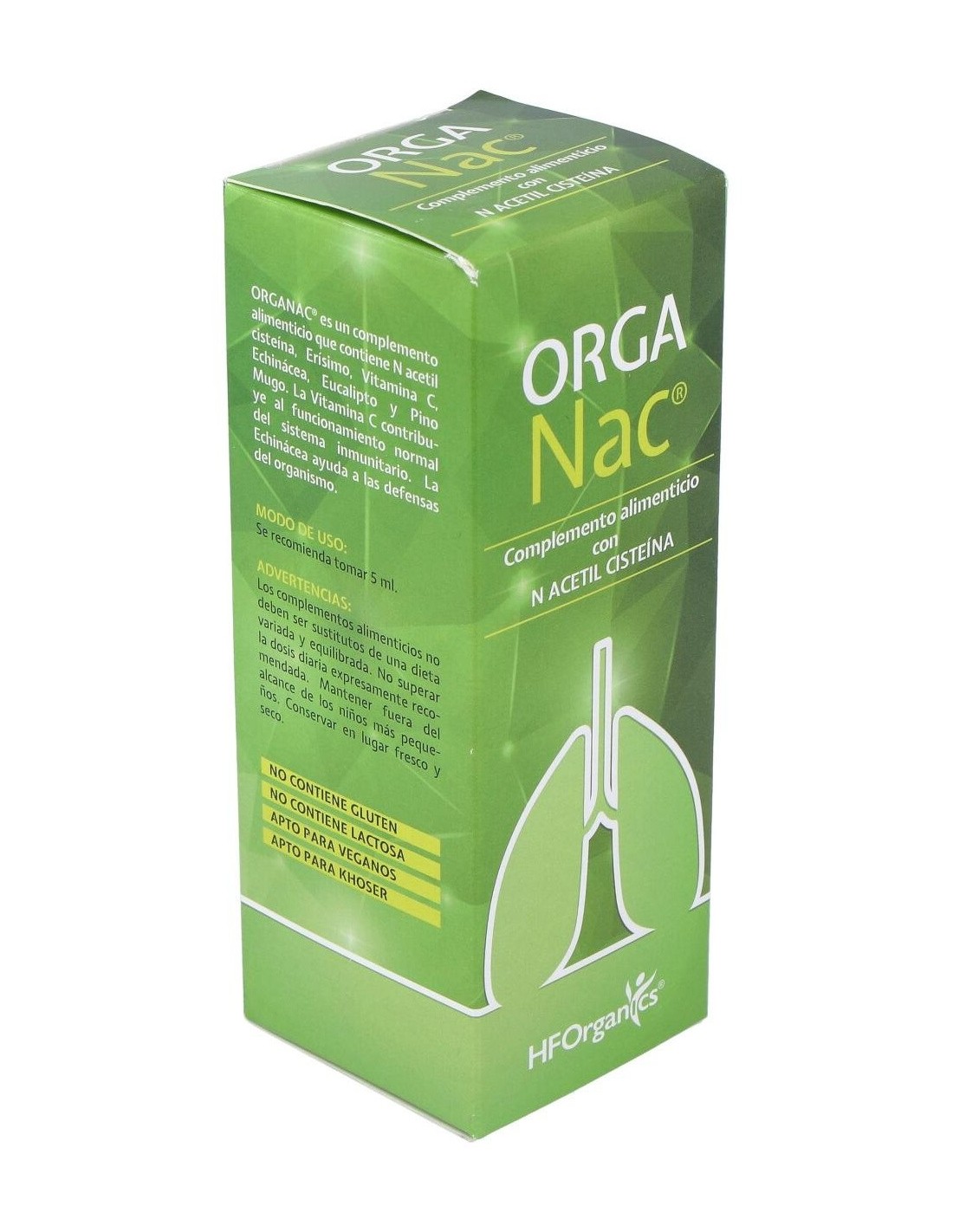 Los principios activos que lleva la formulación del Organac actúan despolimerizando los complejos mucoproteicos de la secreción mucosa disminuyendo su viscosidad y fluidificando el moco: activa el epitelio ciliado, favoreciendo la expectoración: además tiene una acción como citoprotector del aparato respiratorio y antiinflamatoria-relajante de las vías respiratorias altas. Por otra parte también actúa reforzando las defensas del organismo.