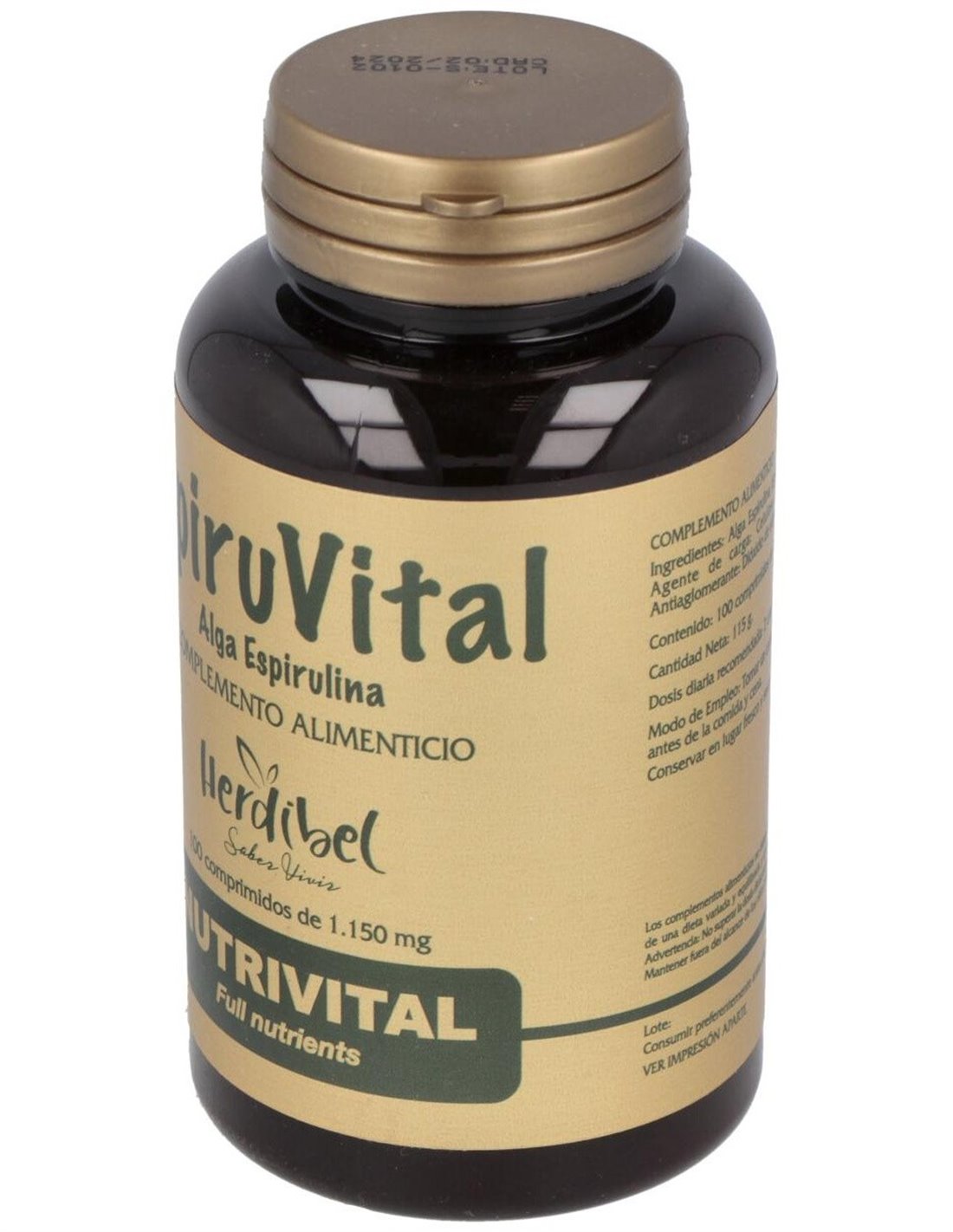 Complemento alimenticio en forma de comprimido elaborado a base de alga espirulina, que es una excelente fuente de vitaminas, minerales, antioxidantes y proteínas de alto valor biológico.