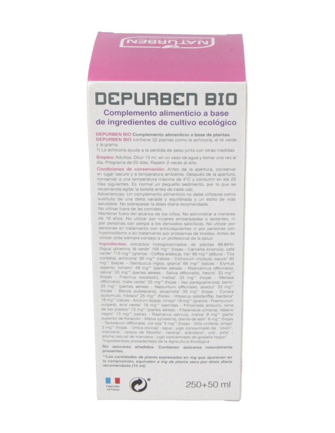 Extractos de plantas Hydroglycerin: [Agua, glicerina, té verde * (hoja - Camellia sinensis), café verde *, Granos - Coffea arabica), cal * (albura - Tilia cordata), achicoria * (raíces - Cichorium intybus), saúco * (bayas -ambucus nigra), grama * (raíces - Agropyron repens), el romero * (- Rosmarinus officinalis), Salvia * ( Salvia officinalis), Ash * Fresno (hojas - Fraxinus excelsior), Toronjil * (hoja Melissa officinalis), la yerba verde * (hojas de yerba mate -), berro * (- Nasturtium officinale), Abedul * (Hojas - Betula alba), alcachofa * (hojas - Cynara cardunculus subsp. Flavescens), pensamiento salvaje (partes *aéreas - Viola tricolor), bardana * (raíces - Arctium lappa), hinojo * (semillas - Foeniculum vulgare), anís *(Pimpinella anisum - Semillas), reina de los prados * ( Spiraea ulmaria), rábano negro * (raíces Raphanus sativus), la malva * (hojas) - Malva sylvestris, diente de león (hojas * - Taraxacum officinale), vid roja * (hojas Vitis vinifera), ortiga * (hojas - Urtica dioica)]: agua: concentrados de zumo: limón *, manzana* * guinda, arándanos *, *Uva, piña *: sabor de manzana natural: * Zumo de grosella negra, papaya*.