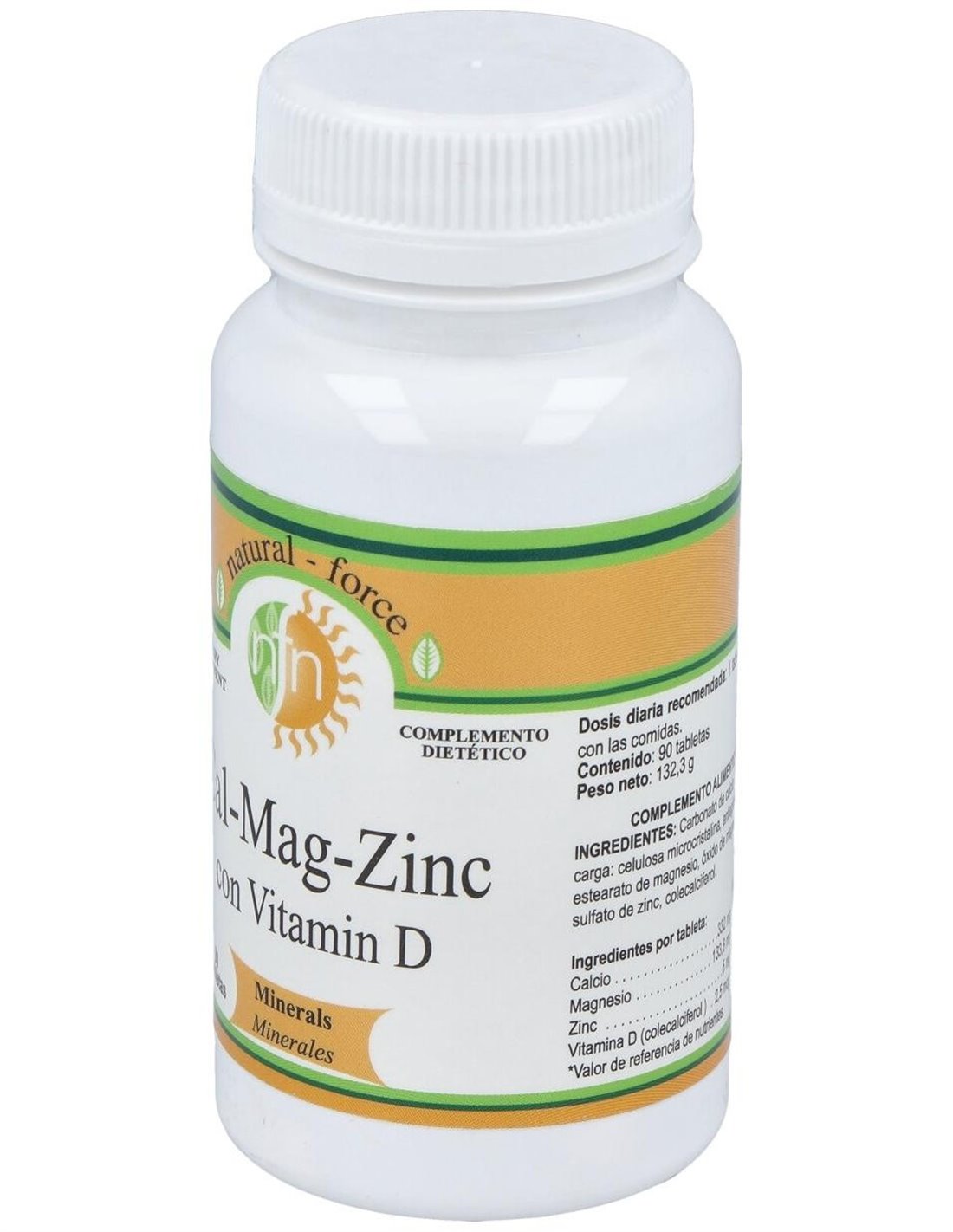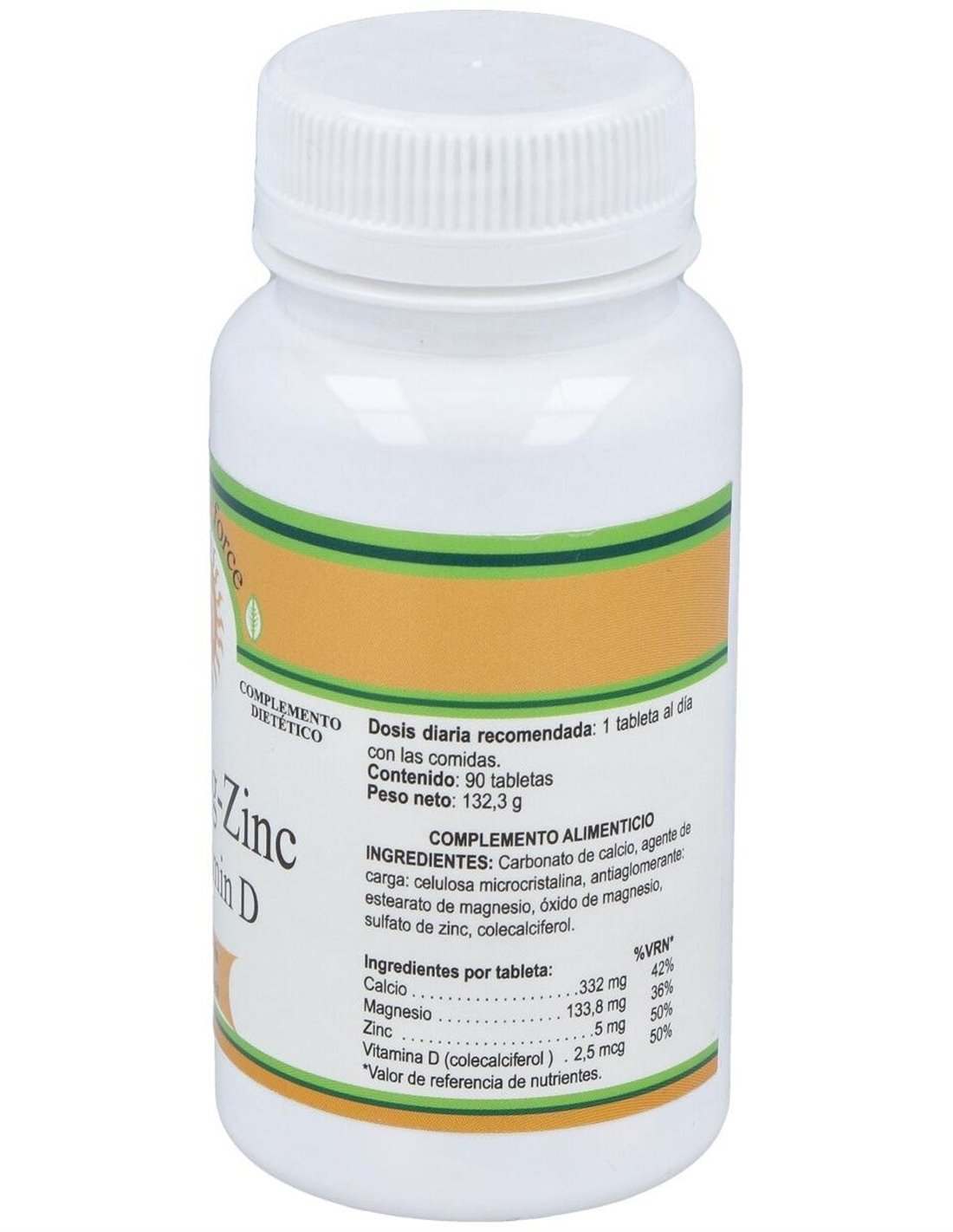 Por 1 comprimido: Carbonato de calcio ... 333 mg. Óxido de magnesio ... 133 mg. Sulfato de zinc ... 5 mg. Vitamina D ... 2,5 µg.