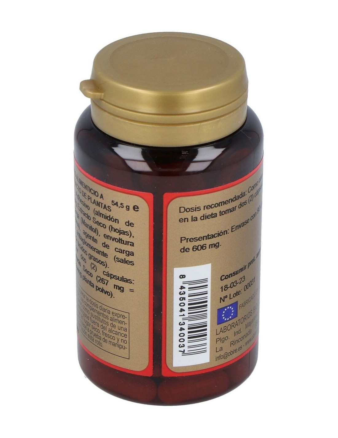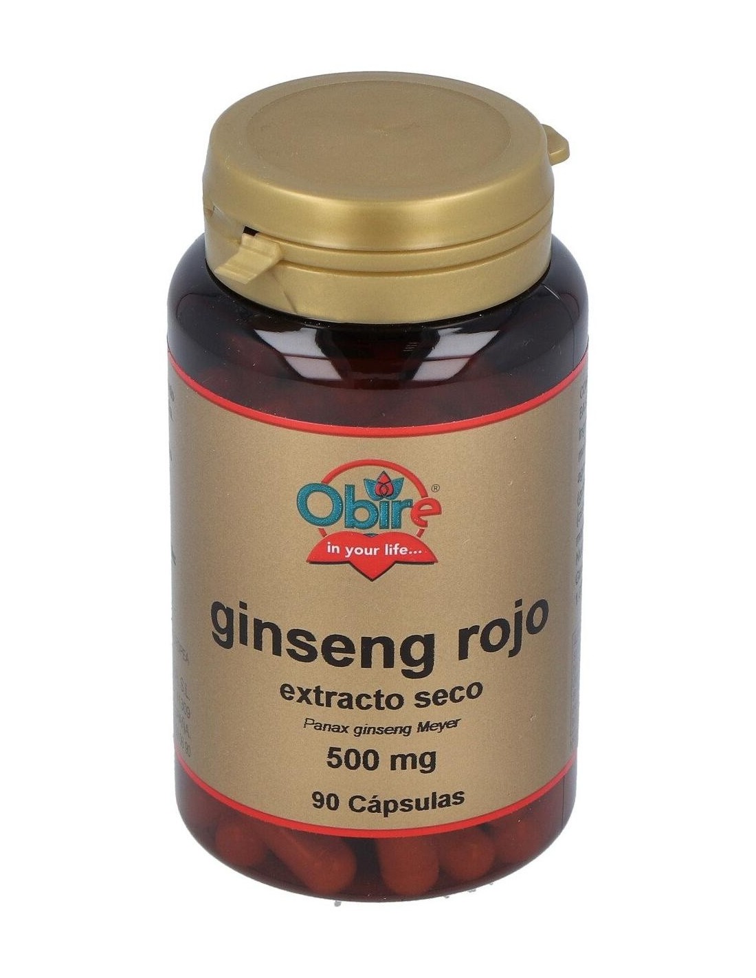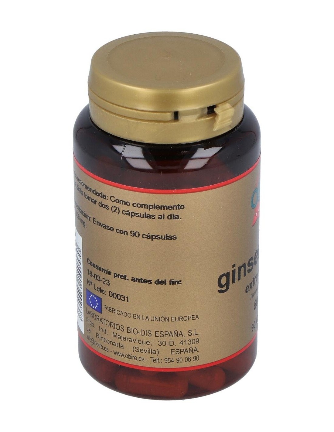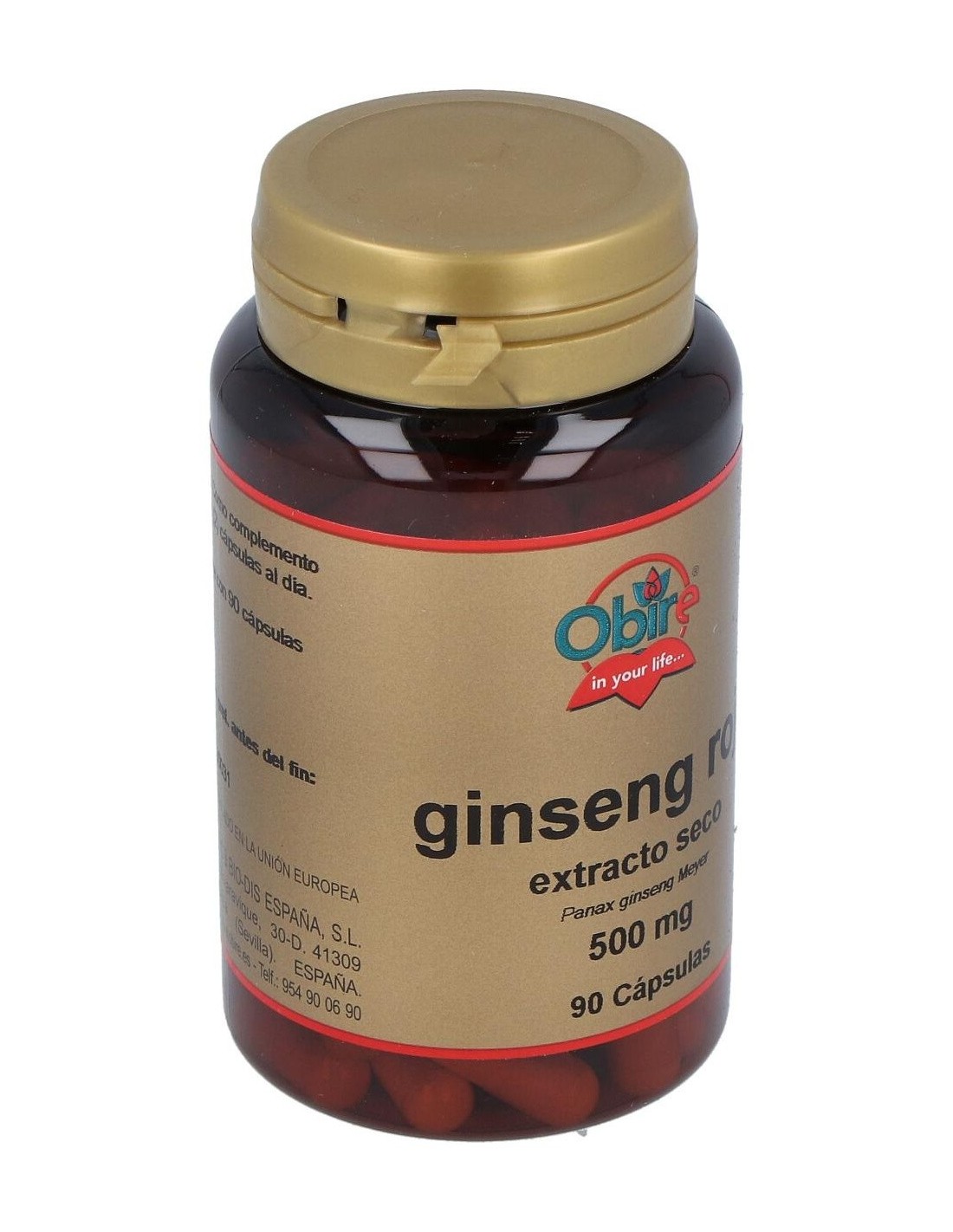 Adhesivo (Almidón de Maiz), Ginseng Extracto Seco Hojas (133.5 mg = 500 mg Ginseng Fresco), Agentes de Carga (Manitol y Celulosa Microcristalina), Antiaglomerante (Estearato Magnésico Vegetal) y Envoltura (Gelatina).