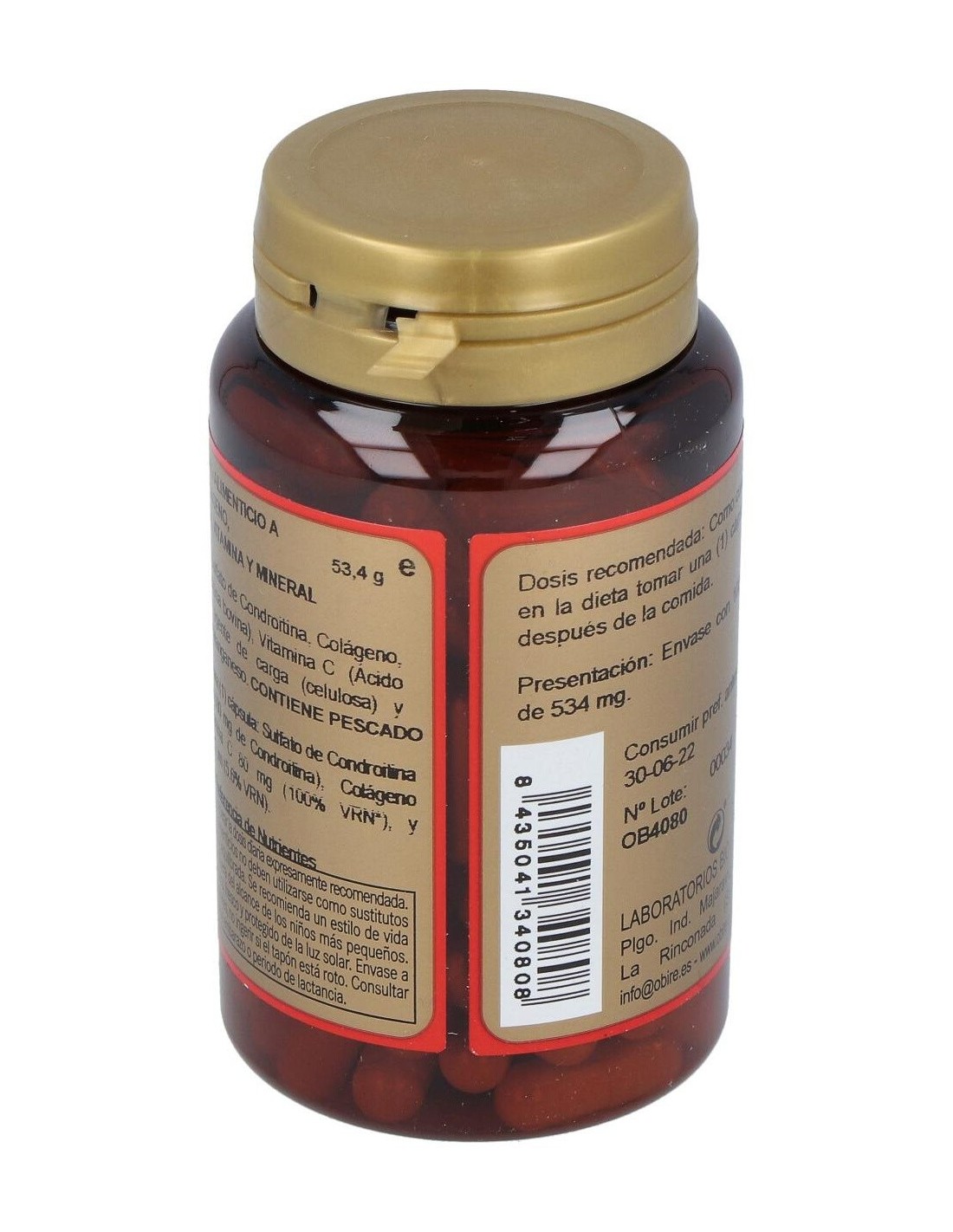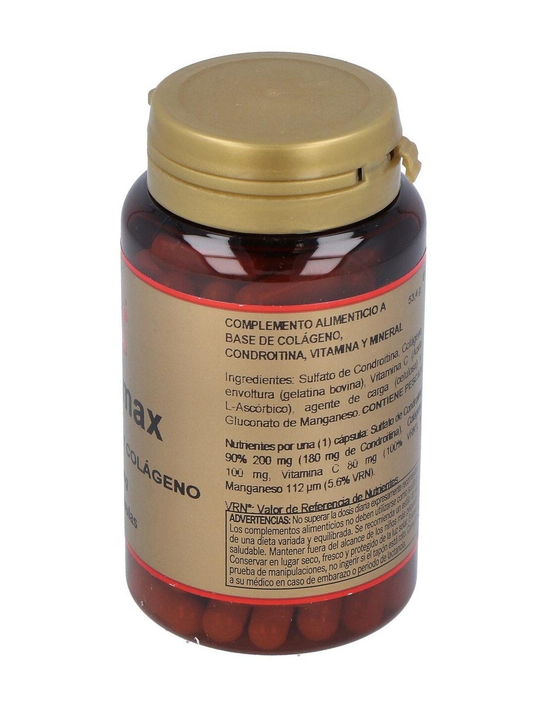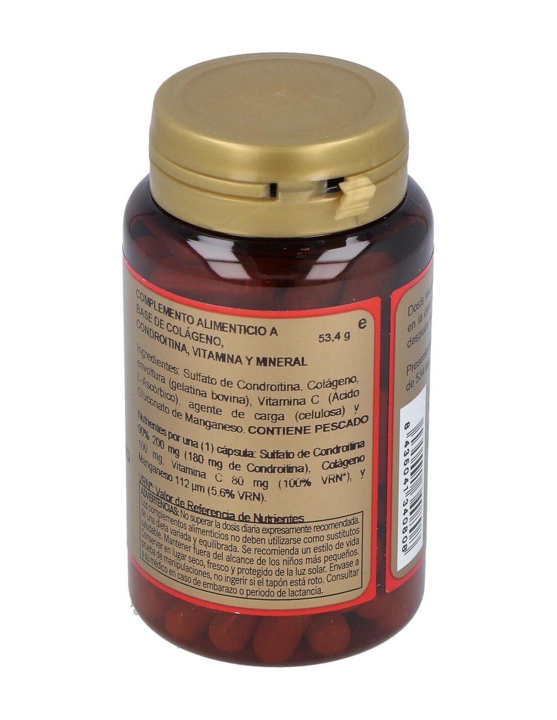 Complemento alimenticio en forma de cápsulas, elaborado a base de colágeno y condroitina, que favorece la salud articular. Ayuda a reconstituir el cartílago dañado, disminuyendo la progresión de problemas articulares. Contiene además vitamina C, que ayuda a reforzar el sistema inmunitario.