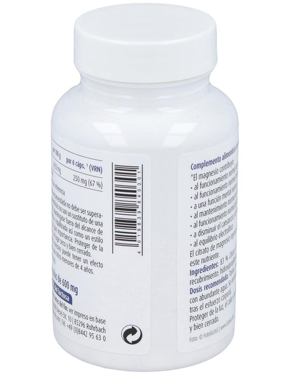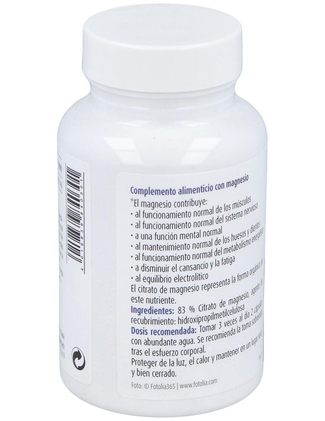 Complemento alimenticio en forma de cápsulas vegetales, elaborado a base de citrato de magnesio, que favorece el equilibrio de los niveles de electrolitos en los líquidos corporales. La forma de citrato es la que mejor se absorbe en el organismo, por lo que es más aprovechable que otras formas.