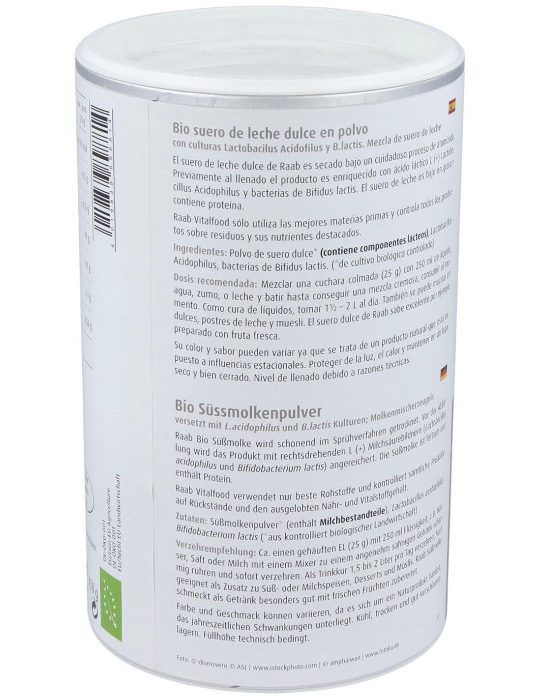 Suero de leche dulce secado bajo un cuidadoso proceso de atomizado. Previamente al llenado el producto es enriquecido con ácido láctico L(+) Lactobacillus Acidophilus y bacterias de Bifidus lactis. El suero de leche es bajo en grasa y contiene proteína.