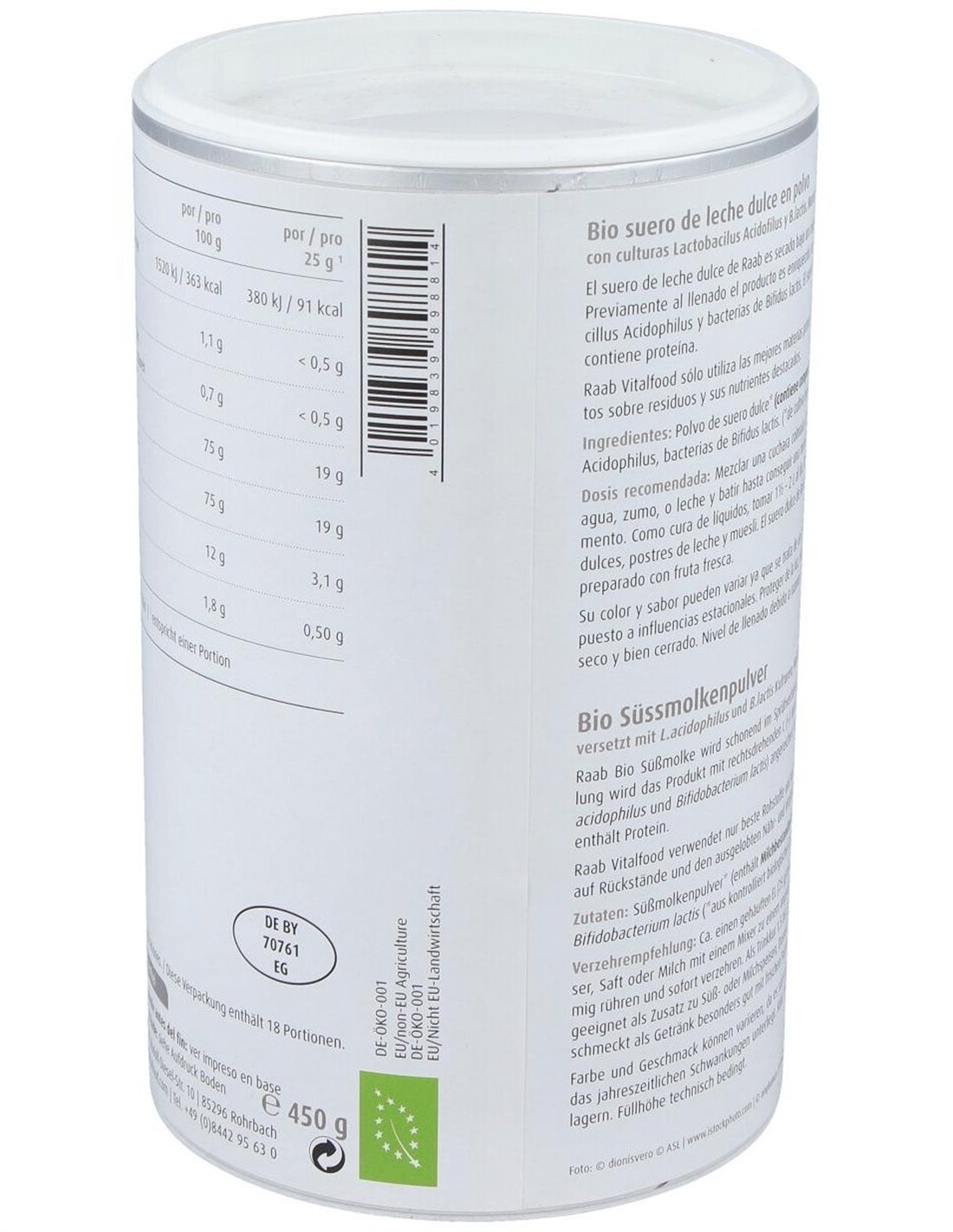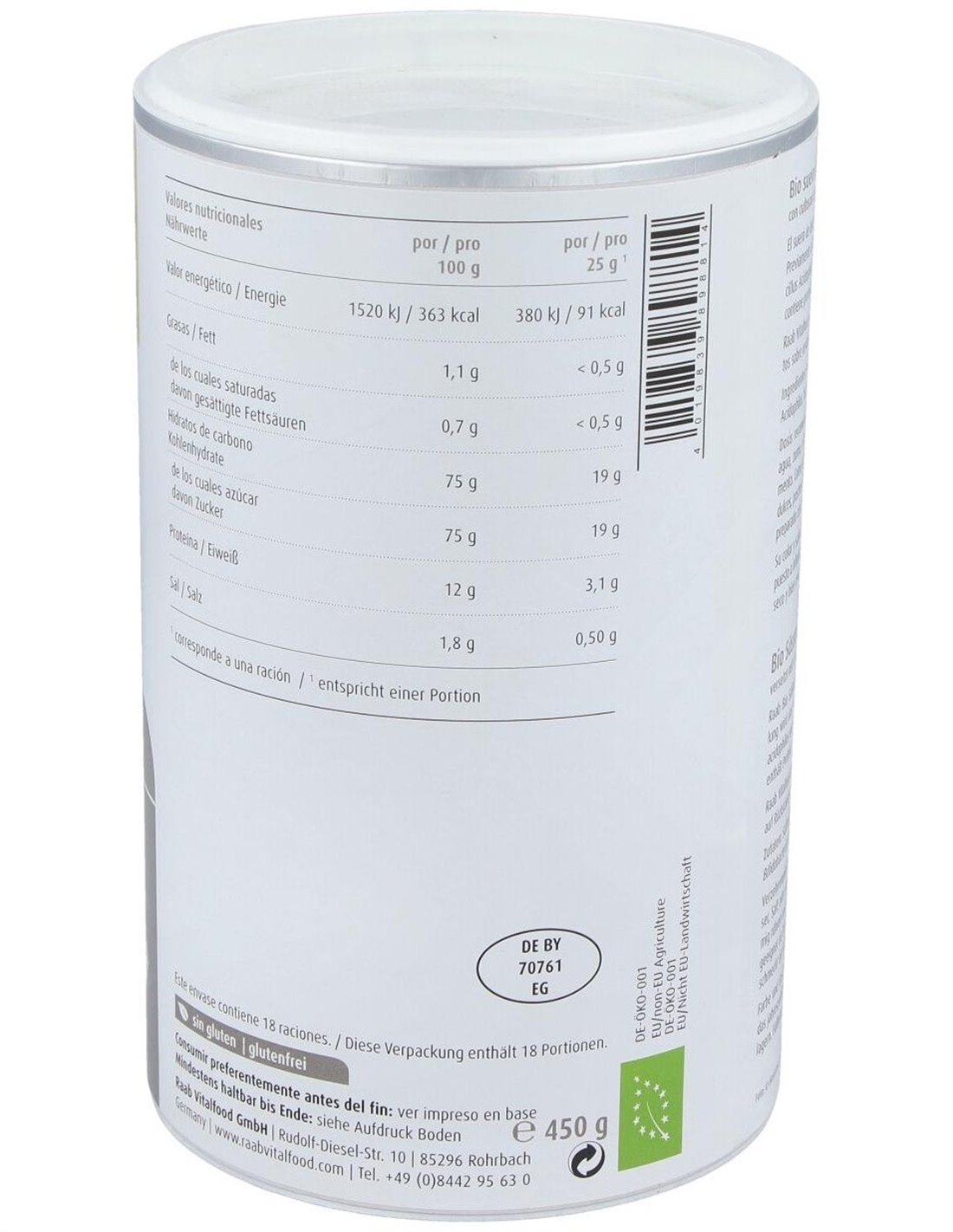 Suero de leche natural, 450gr de Raab Vitalfood