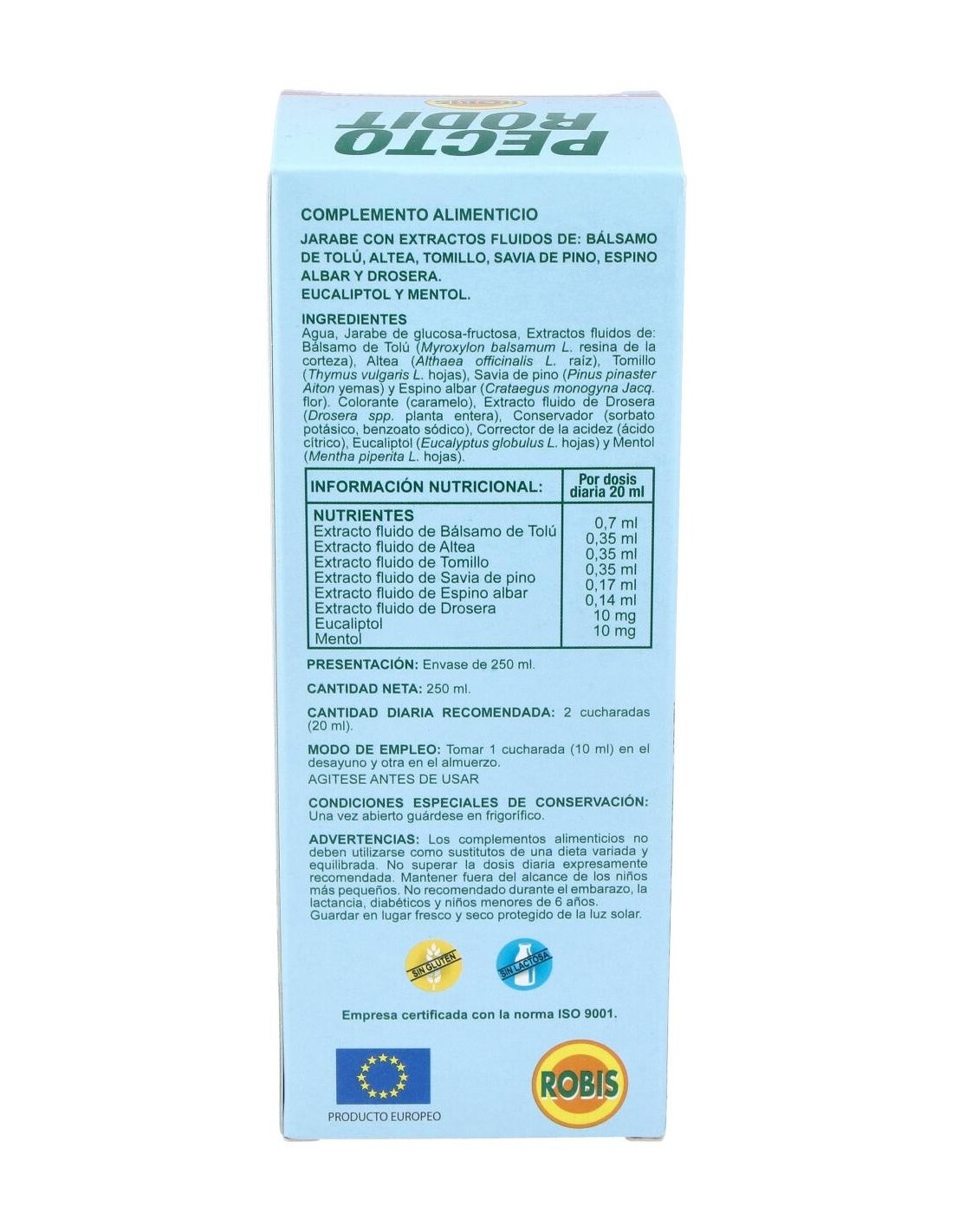 No utilizar en caso de hipersensibilidad o alergia comprobada a uno o más componentes. Es recomendable pedir consejo a un profesional sanitario en relación al uso de estos productos y seguir las instrucciones del fabricante. En caso de persistencia de la tos, malestar general o presencia de otros síntomas, es imprescindible consultar con un profesional sanitario.
