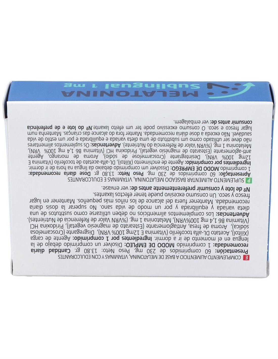 Complemento alimenticio en forma de comprimidos sublinguales, elaborado a base de melatonina, que contribuye a mejorar el tiempo de conciliación del sueño. Favorece un mejor descanso durante el sueño, ayudando a disminuir el cansancio y los síntomas del estrés.Ideal para personas con dificultad para dormir o que tengan que realizar un viaje largo, ya que ayuda a la recuperación de la sensación de """"jet lag"""".La fórmula se completa con vitamina E y B6, que ayudan a disminuir la sensación de cansancio.