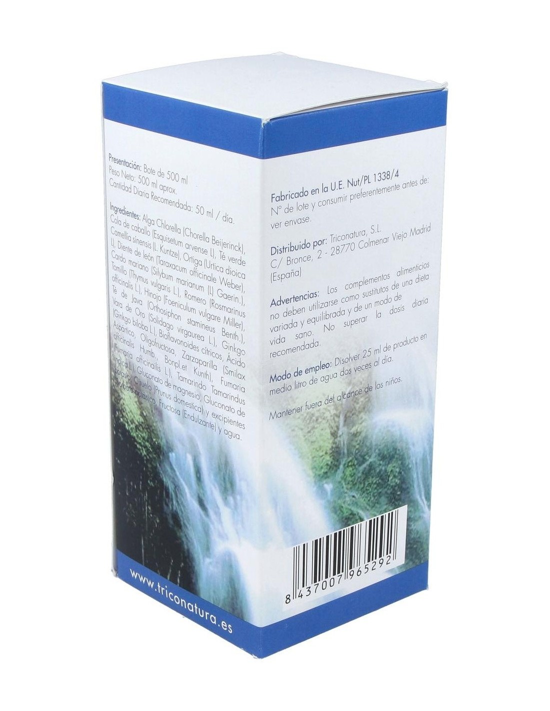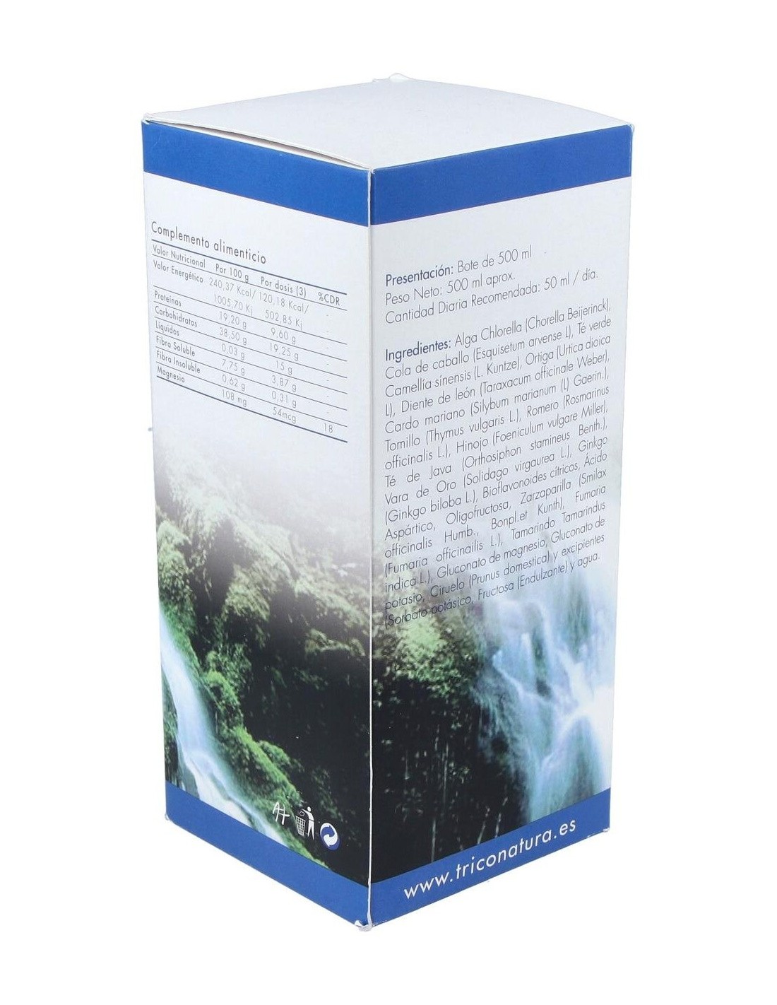 Modo de empleo:Diluir 50 ml en 1,5 litros de agua y beber a lo largo del día. En el caso de provocar un efecto depurativo rápido e incómodo, bajar a 25 ml diarios. Presentación:Frasco de 500 ml.