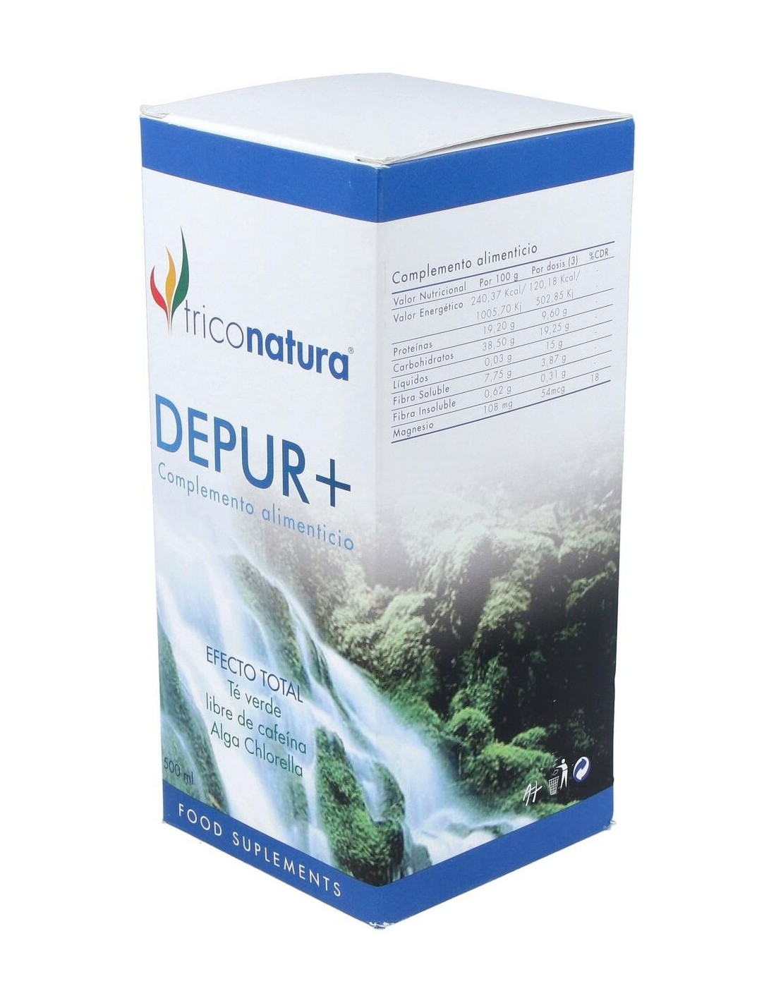 Trico Depur+ es un depurativo drenador que actúa sobre todos los órganos de eliminación (hígado, riñón, intestino, pulmón y piel), con ligera acción i