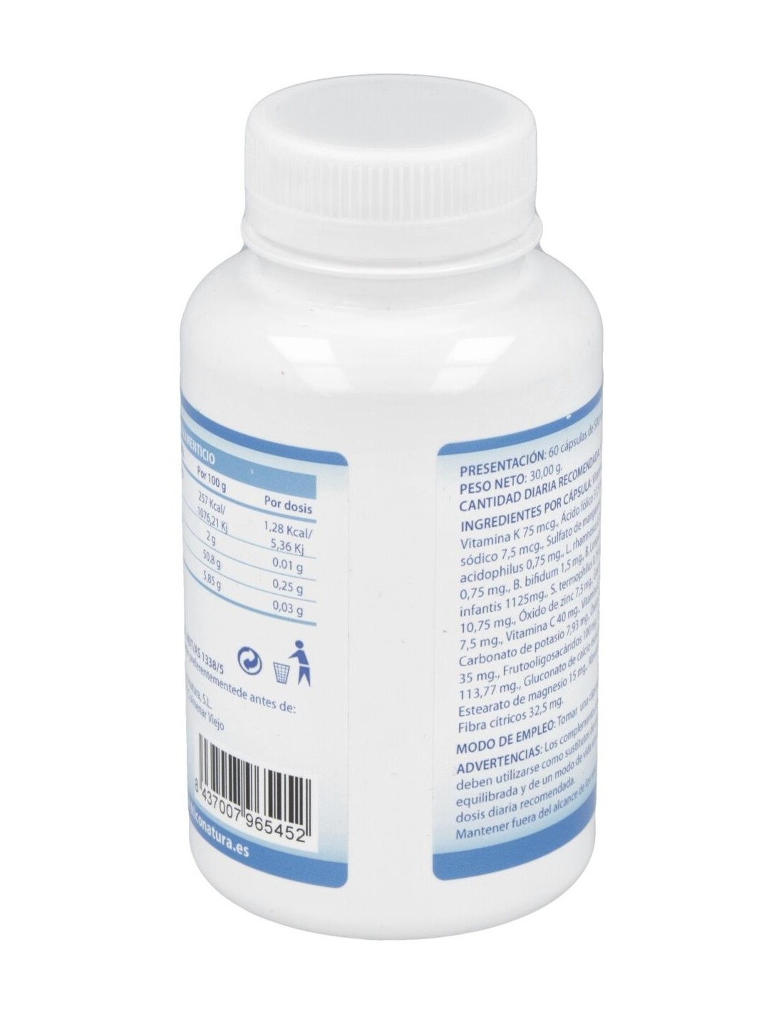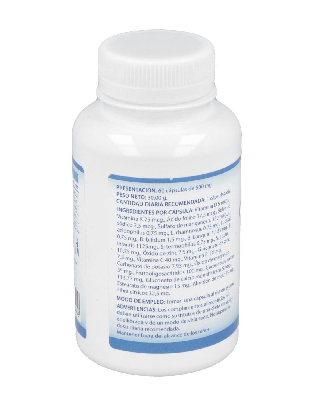 Este complemento nutricional aúna la acción sinérgica de vitaminas y minerales con probióticos específicos en las proporciones óptimas para asentar el