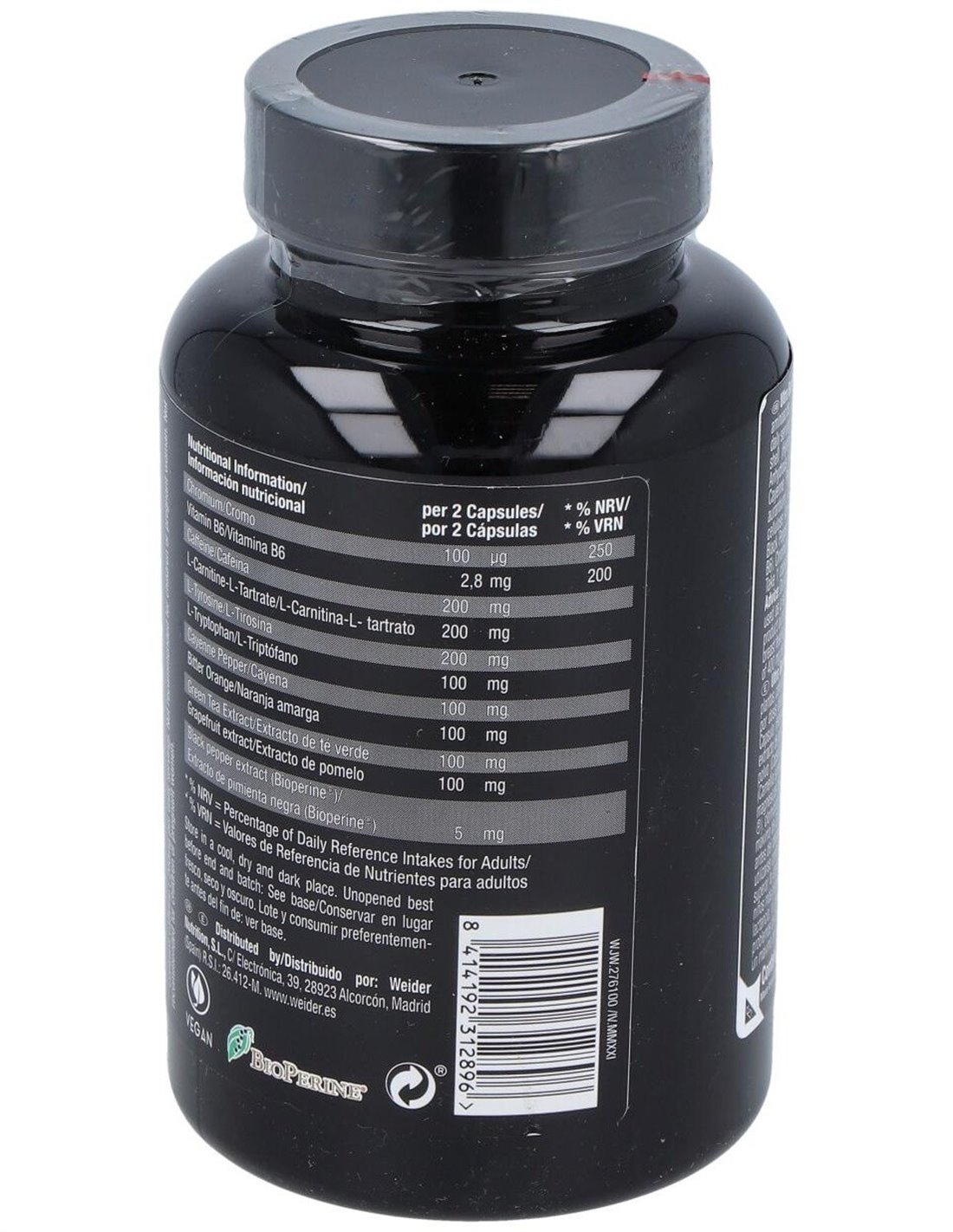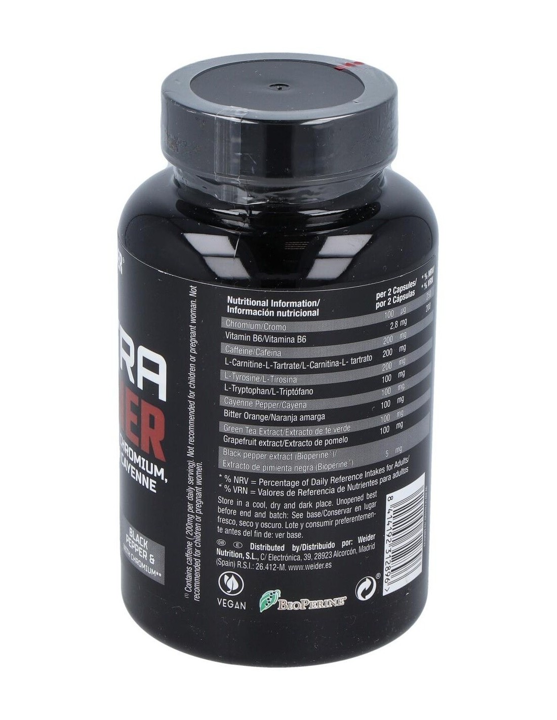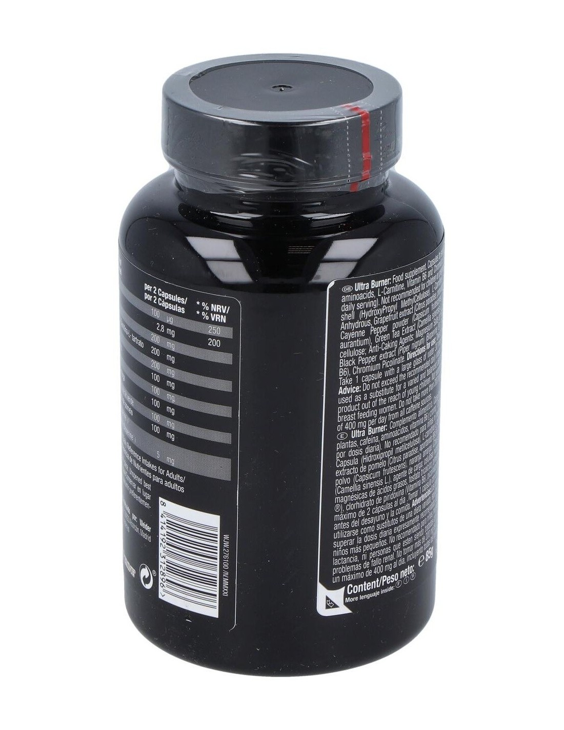 El Weider Ultra Burner está compuesto por ingredientes cuidadosamente seleccionados para su estabilidad y absorción, facilitando su incorporación en la rutina diaria. Su diseño en cápsulas permite una dosificación práctica y controlada, ideal para quienes buscan complementar sus hábitos saludables.