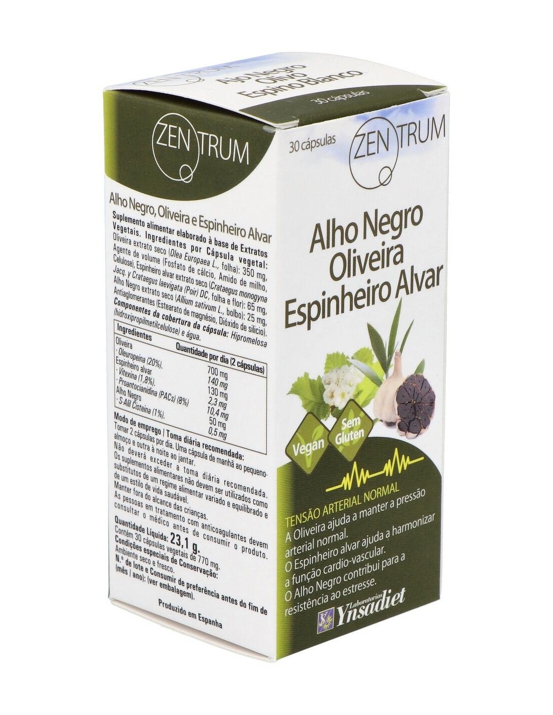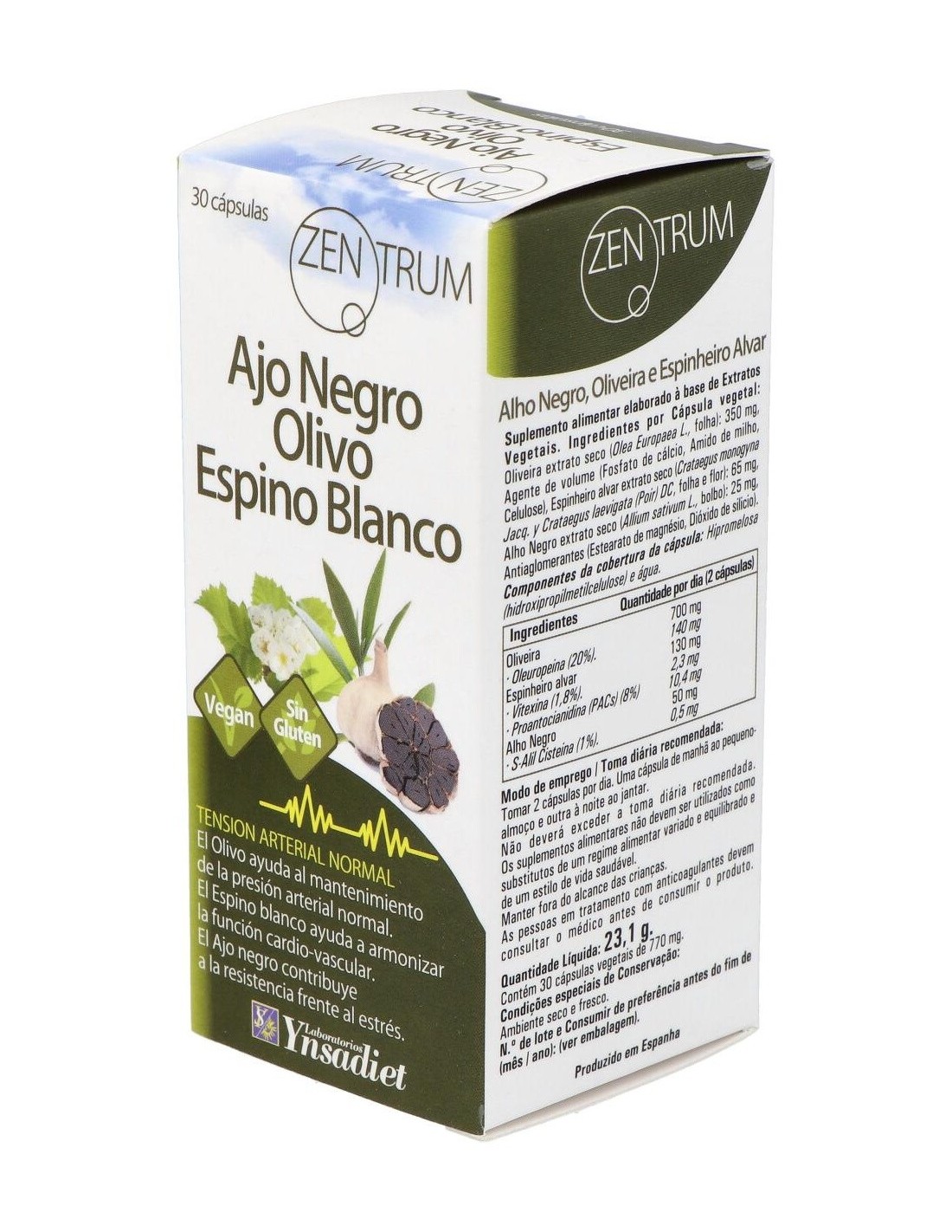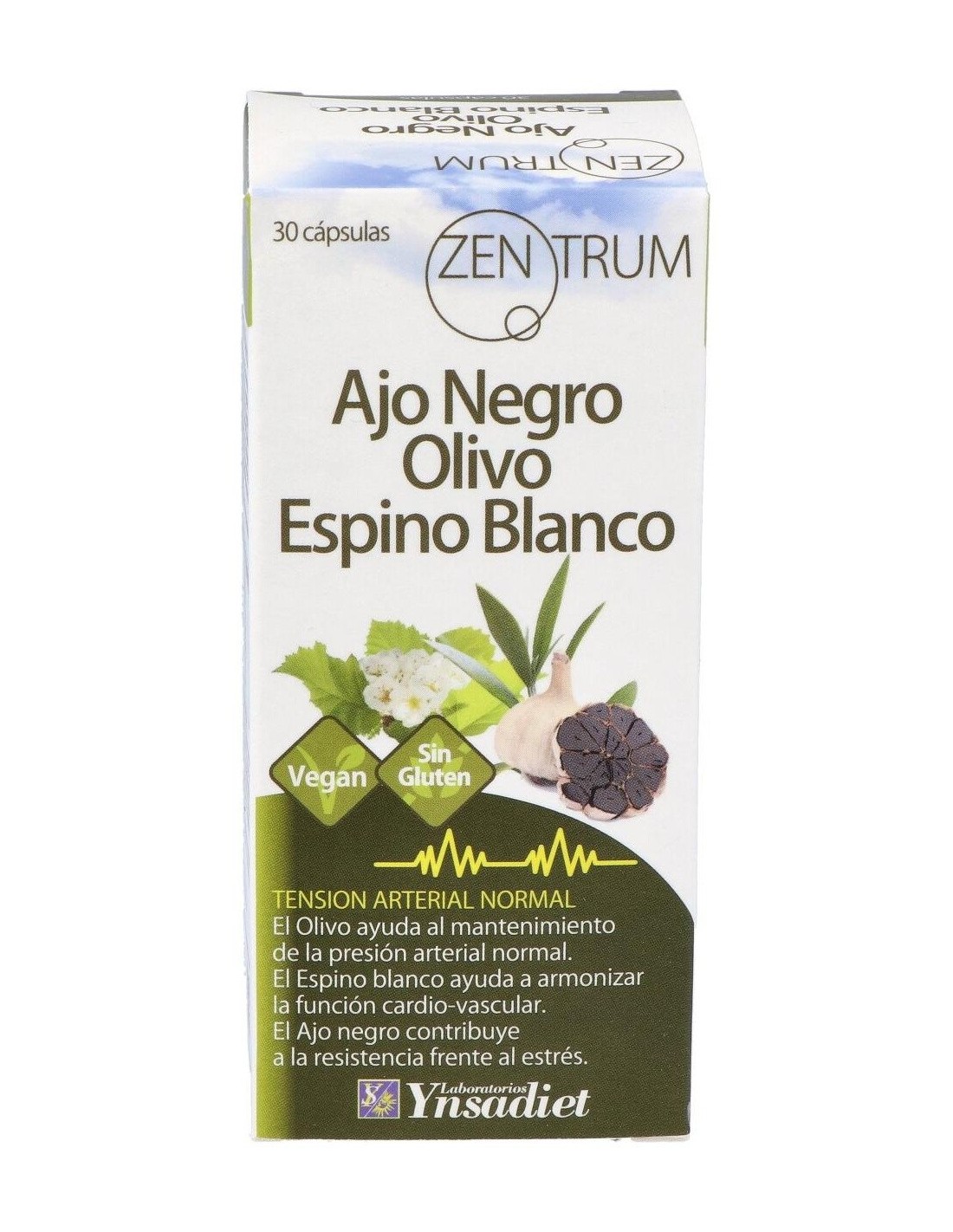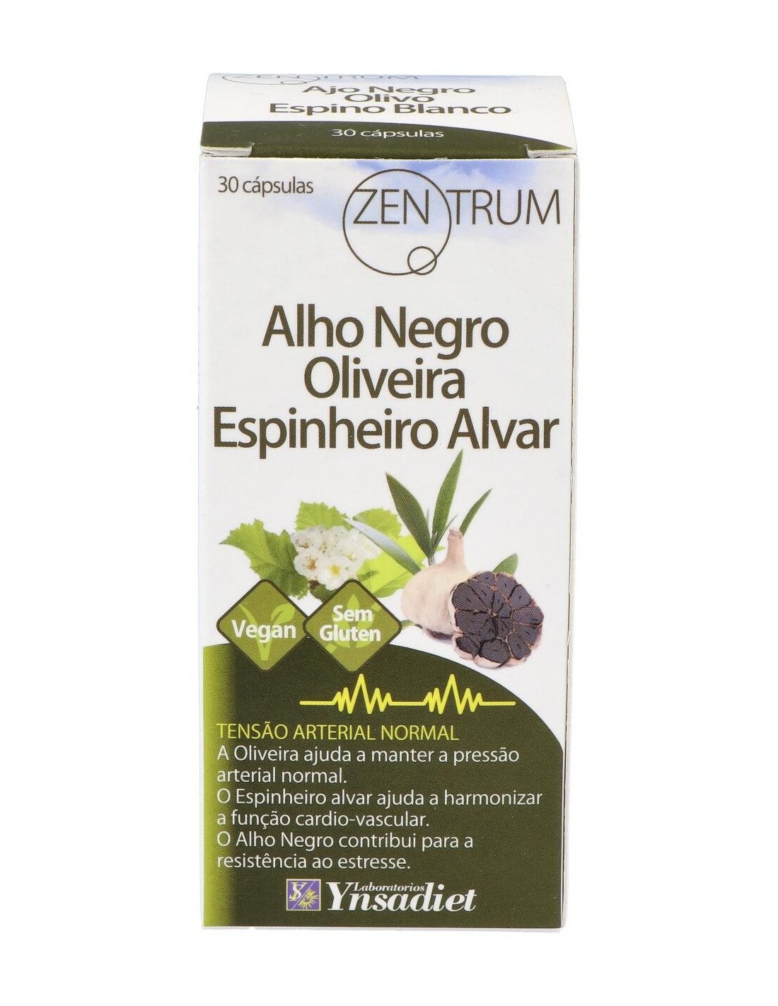 Complemento alimenticio en forma de cápsulas, elaborado a base de ajo negro, olivo y espino blanco, que contribuyen a la buena salud del sistema cardiovascular.