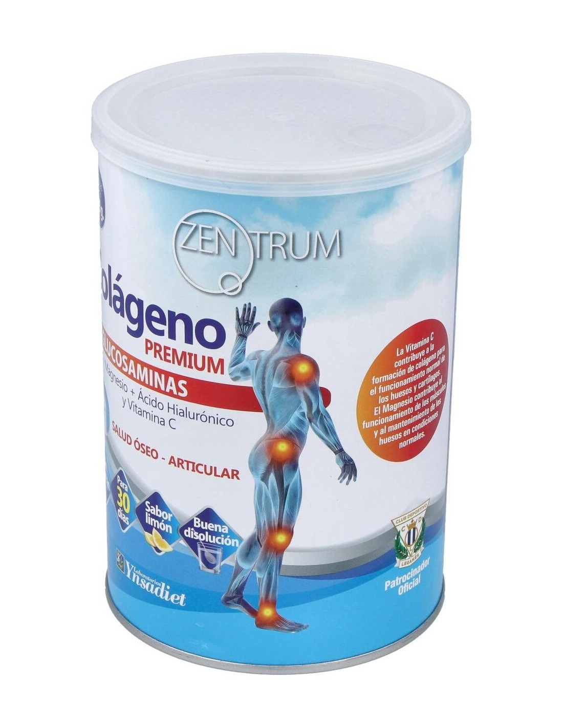 Complemento alimenticio elaborado a base de Colágeno Hidrolizado, Magnesio, Glucosamina HCl, Ácido Hialurónico y Vitamina C. Ayuda a estimular la producción del colágeno óseo-articular frenando el proceso degenerativo y actuando como preventivo al reforzar la articulación. Sabor a limón.