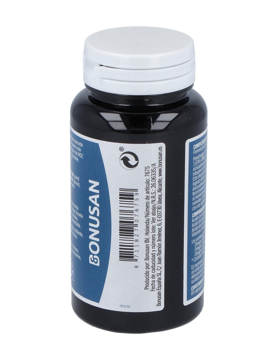 Otros ingredientes:Pared de la cápsula (gelatina de pescado, glicerol, agua).Modo de empleo:Tomar 2 veces al día 2 perlas durante o inmediatamente después de la comida. Presentación:Bote de 60 cápsulas.
