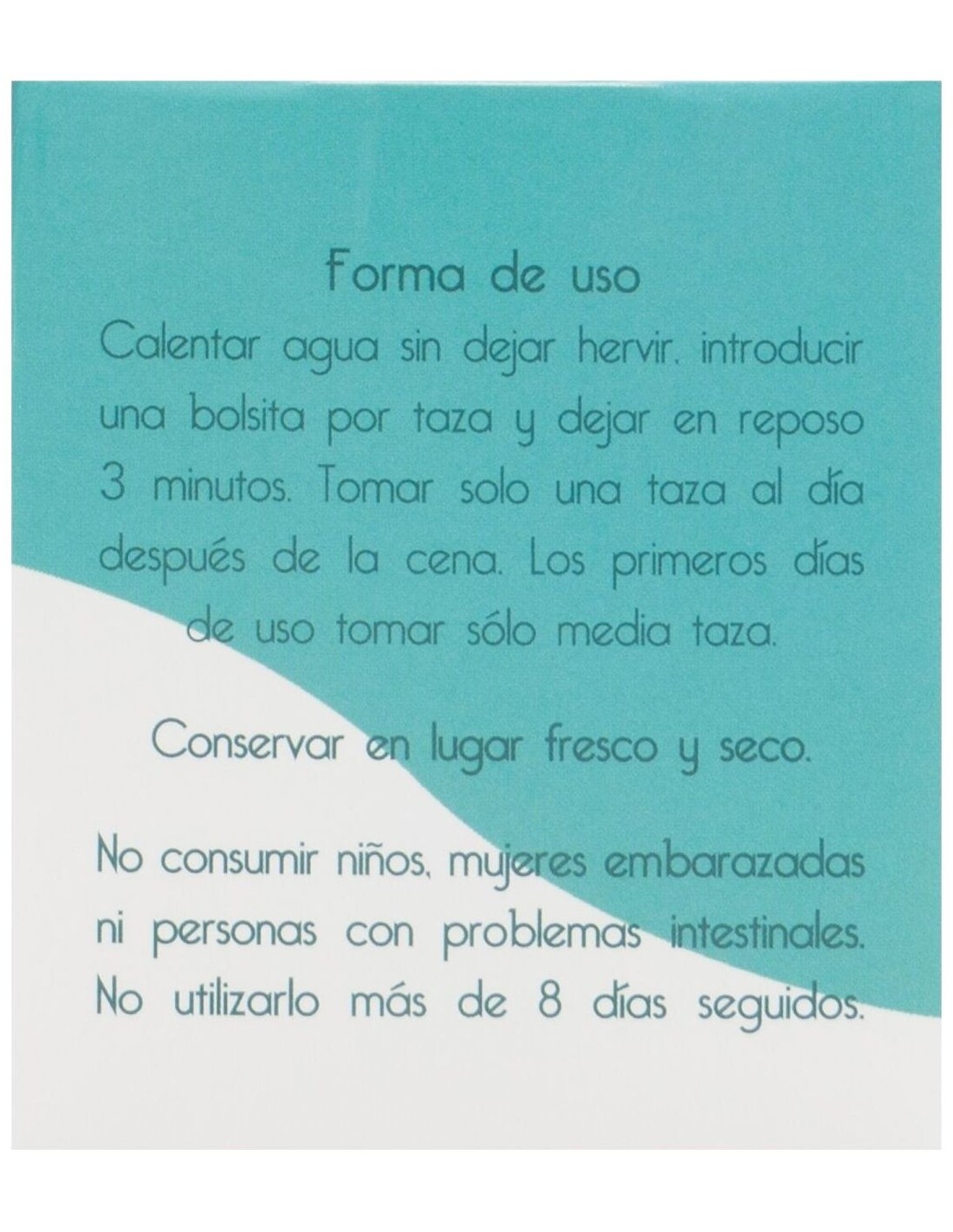*No tomarlo niños, mujeres embarazadas ni personas con problemas intestinales.