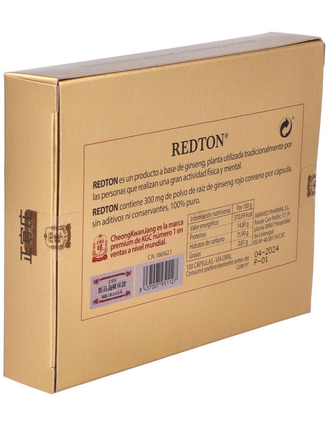 Redton Ginseng Rojo Coreano 100Cap de Abamed Farma