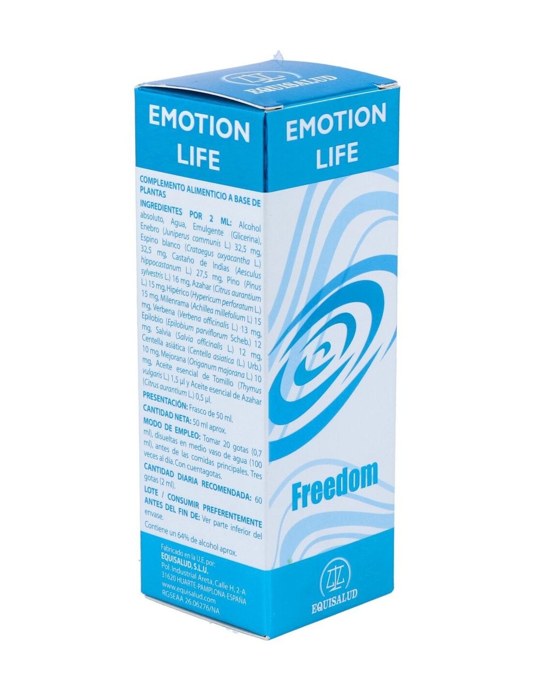 EmotionLife Freedom actúa favoreciendo los procesos naturales de regulación psicobiológica ligados a la adicción física o psíquica. Contribuye en la regulación de la ansiedad y las alteraciones fisiológicas relacionadas con el síndrome de abstinencia, el cual es ocasionado por la supresión o retirada de la sustancia o situación que provoca la adicción. Así como los órganos de los sentidos nos aportan la información del mundo exterior, tenemos un complejo sistema de percepción interior - interocepción - que da información del bienestar o malestar interno a múltiples niveles. Cuando la percepción del malestar interior físico o psíquico es amainada o controlada por una sustancia o una relación, se puede generar dependencia y su retiro puede provocar síndrome de abstinencia o de reclamo de la sustancia o situación inductora de la dependencia. La modulación de estos circuitos interoceptivos se muestra como una de las vías más seguras para disminuir o eliminar la necesidad de sustancias o situaciones adictivas. Este es el propósito del EmotionLife Freedom, que estimula los procesos de regulación natural que contribuyen al control de la dependencia y el síndrome de abstinencia, consistente en la necesidad de consumir para eliminar el malestar desencadenado por las complejas conexiones de los circuitos interoceptivos. Composición: