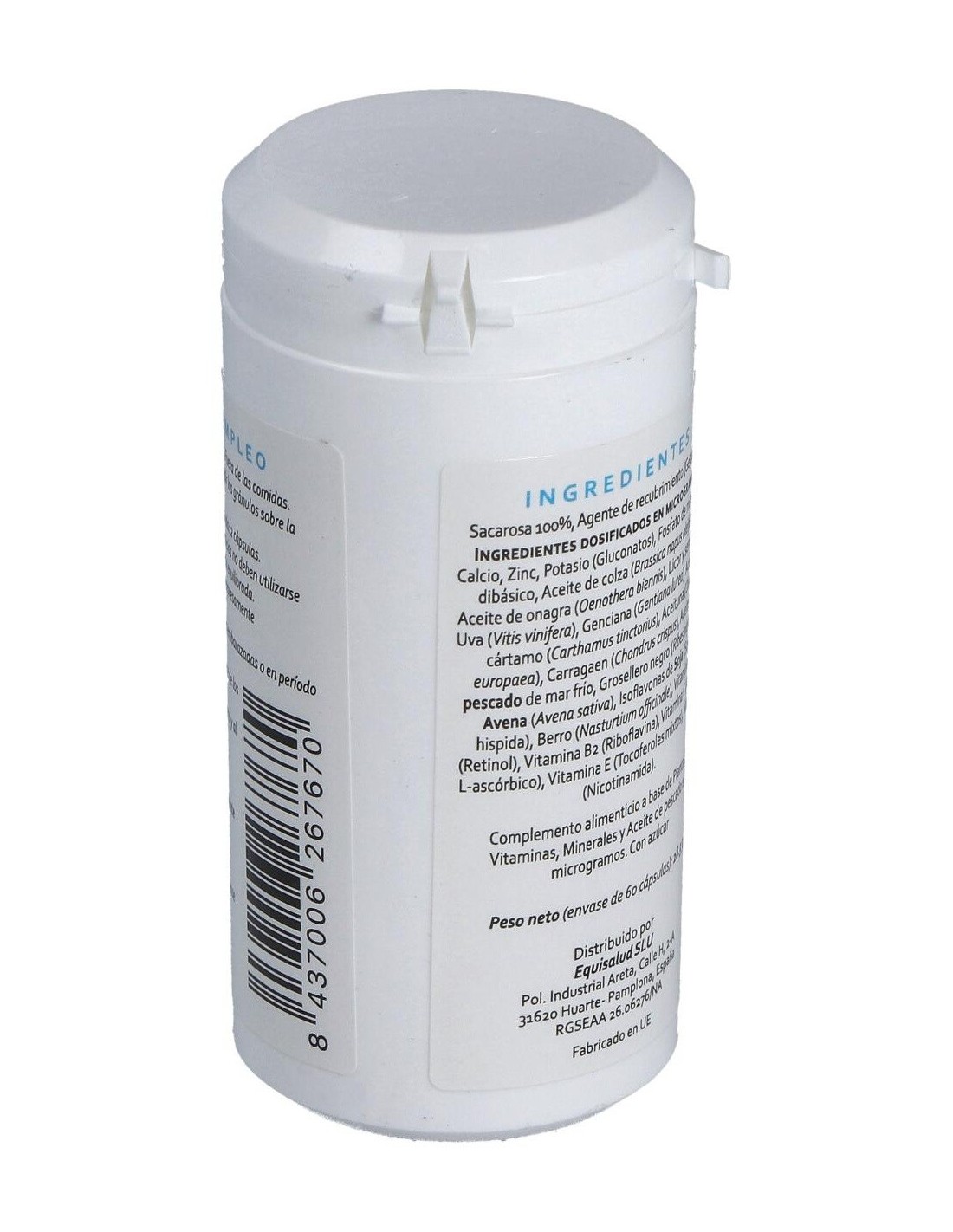 Plantas: Aceite de colza (Brassica napus oleifera), aceite de onagra (Oenothera biennis), licor y semilla de uva (Vitis vinifera), genciana (Gentiana lutea), aceite de cártamo (Carthamus tinctorius), aceituna (Olea europaea), carragaen (Chondrus crispus), aceite de pescado de mar frío, grosellero negro (Ribes nigrum), avena (Avena sativa), isoflavonas de soja (Soja hispida), berro (Nasturtium officinale).