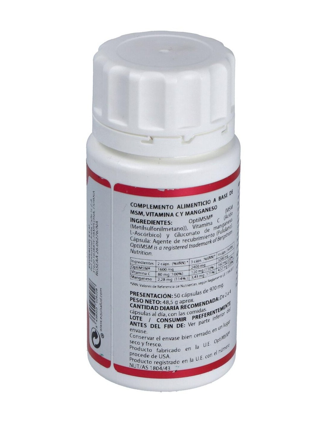 El MSM no tiene mal sabor, ni mal olor ni provoca irritaciones en la piel. Deriva del DMSO, sustancia antiinflamatoria y analgésica además de antioxidante, con desagradable olor. El DMSO da lugar al MSM y al DMS. No tiene por tanto esta sustancia efectos secundarios, raras veces molestias digestivas si se toman dosis exageradas. Dosis muy por encima de las recomendadas no han producido efectos tóxicos en humanos. Propiedades del MSM.Su principal virtud es la relacionada con el mantenimiento sano del tejido conectivo y por tanto relacionada con la flexibilidad y la elasticidad de las articulaciones, tendones, ligamentos, cartílago, piel. Resumiendo, tiene estas propiedades: