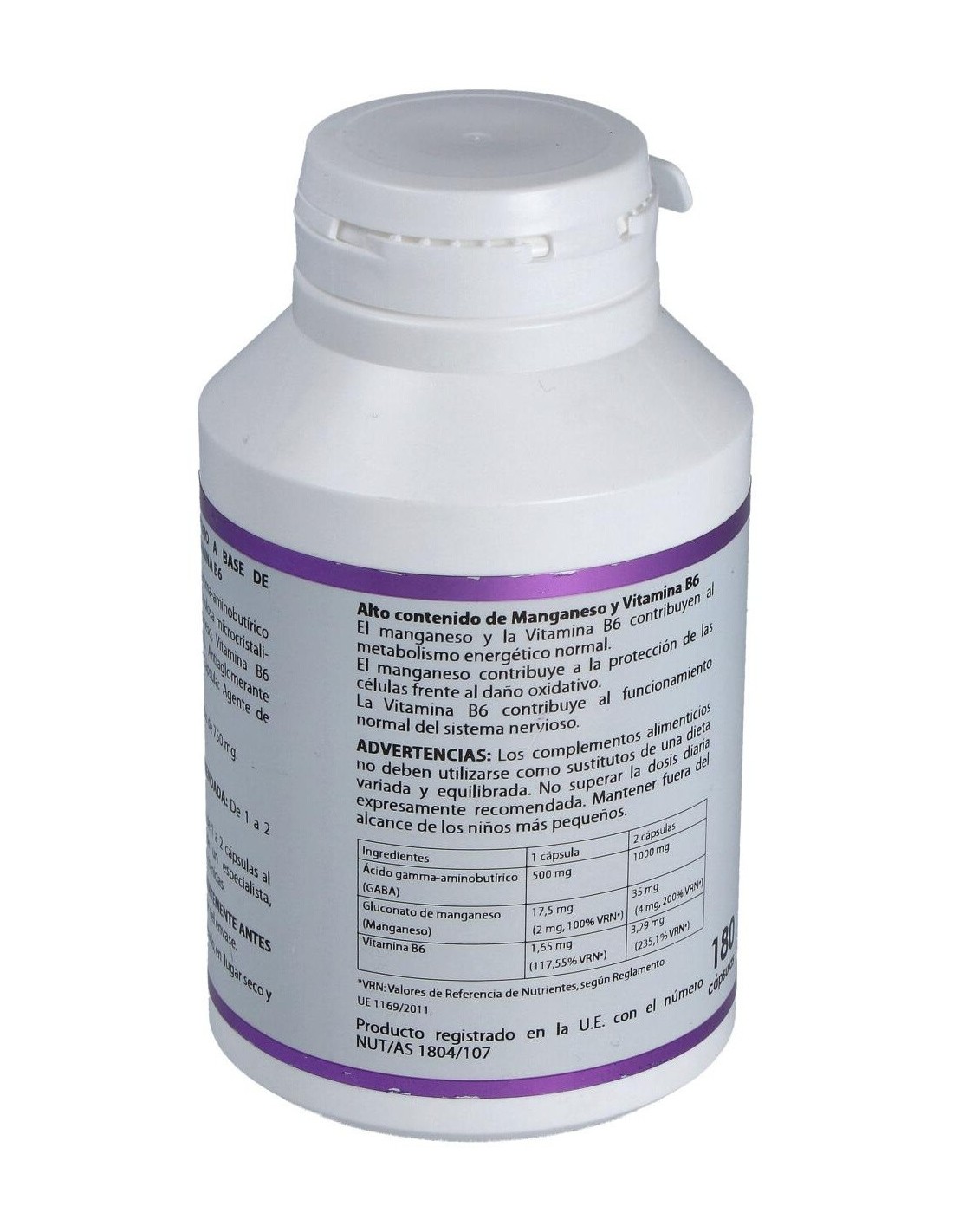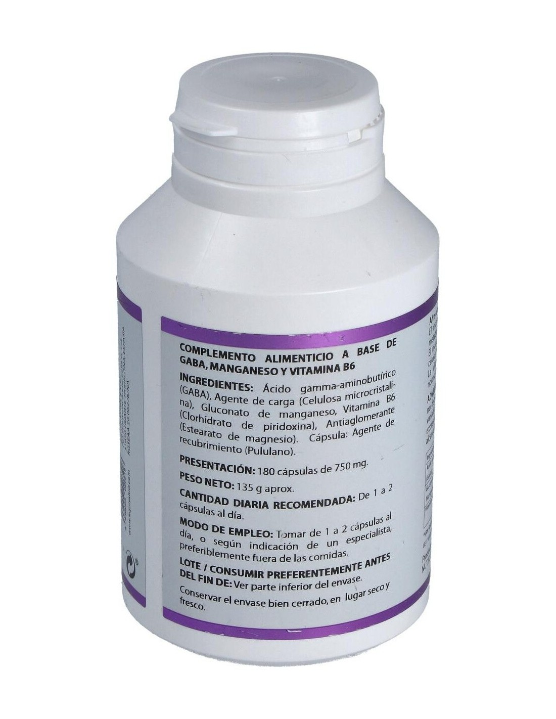 Complemento alimenticio a base de GABA, manganeso y vitamina B6. Actúa como un relajante natural inhibiendo al cerebro de funciones que puedan encontrarse sobrecargadas debido al estrés u otros factores.