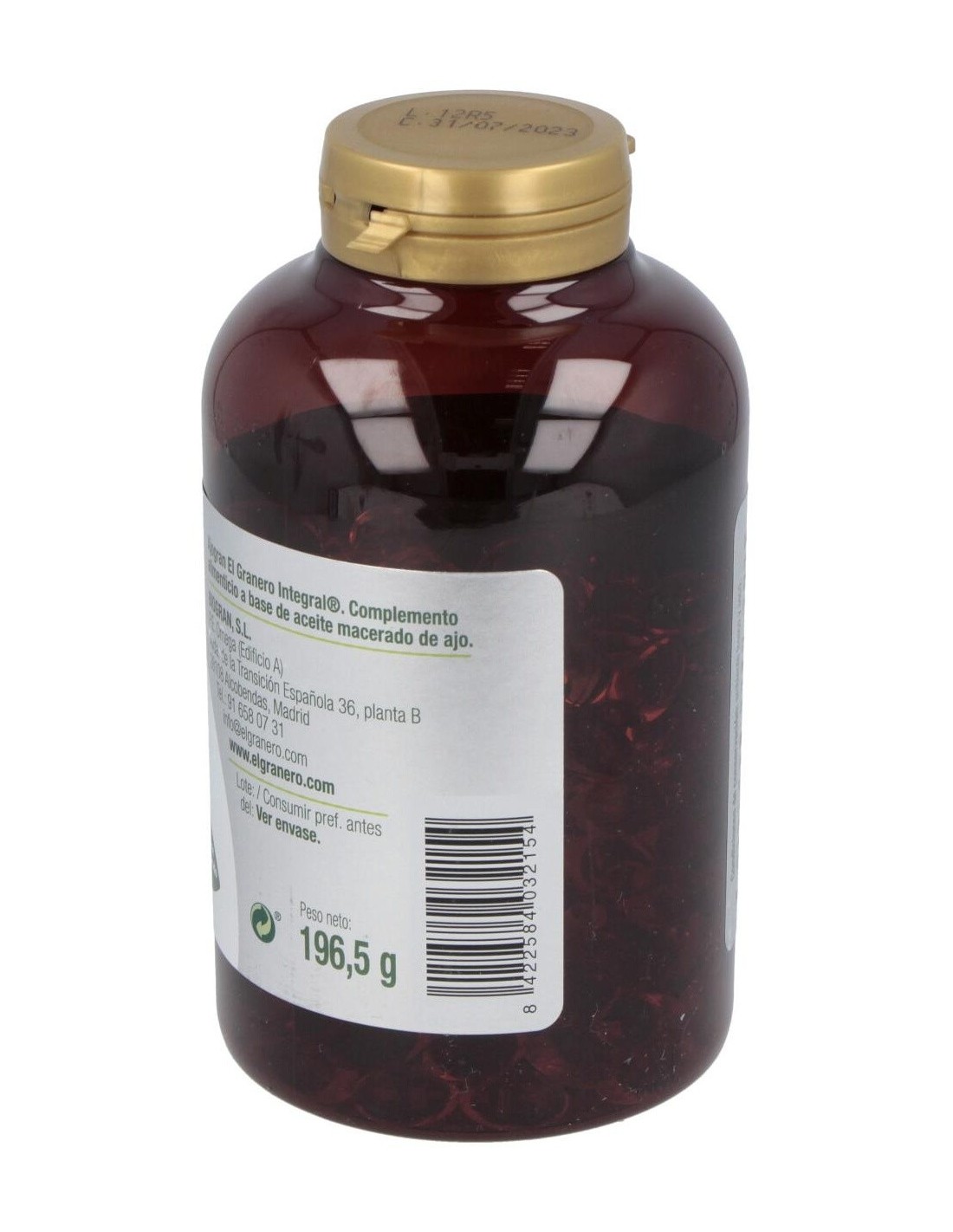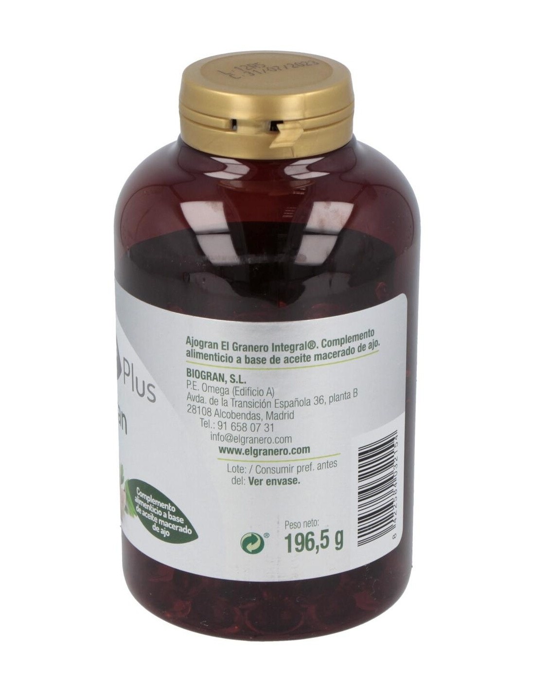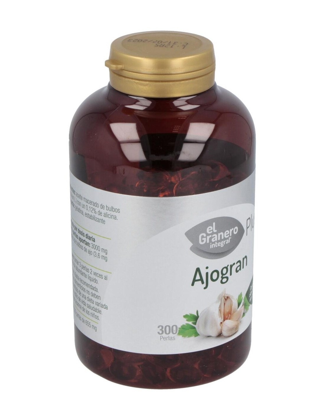 Composición por perla:300 mg de ajo macerado en aceite vegetal. Modo de empleo:Tomar 3 perlas 2 veces al día. Presentación:Bote de 300 perlas.