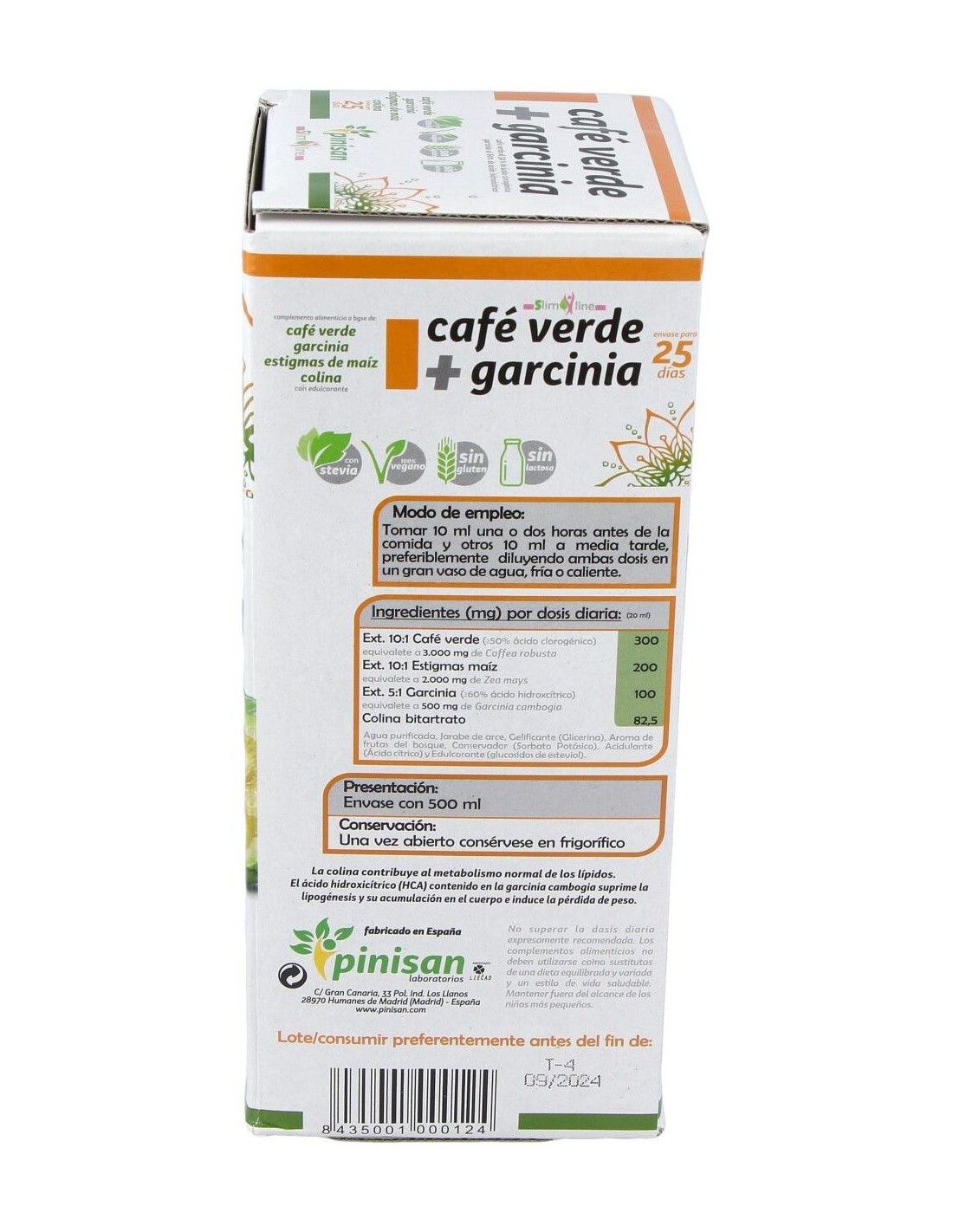 El Cafe Verde Con Garcinia 500Ml. de Pinisan es un suplemento natural para personas interesadas en el bienestar. Apoya el control del peso mediante su fórmula que combina extractos de café verde y garcinia.