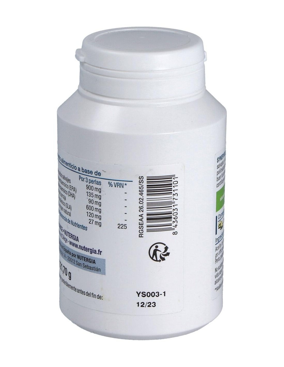 Synerviol (Aceite De Pescado) 180Perlas de Nutergia proporciona una forma accesible de incorporar ácidos grasos esenciales en la alimentación diaria, apoyando hábitos nutricionales equilibrados.