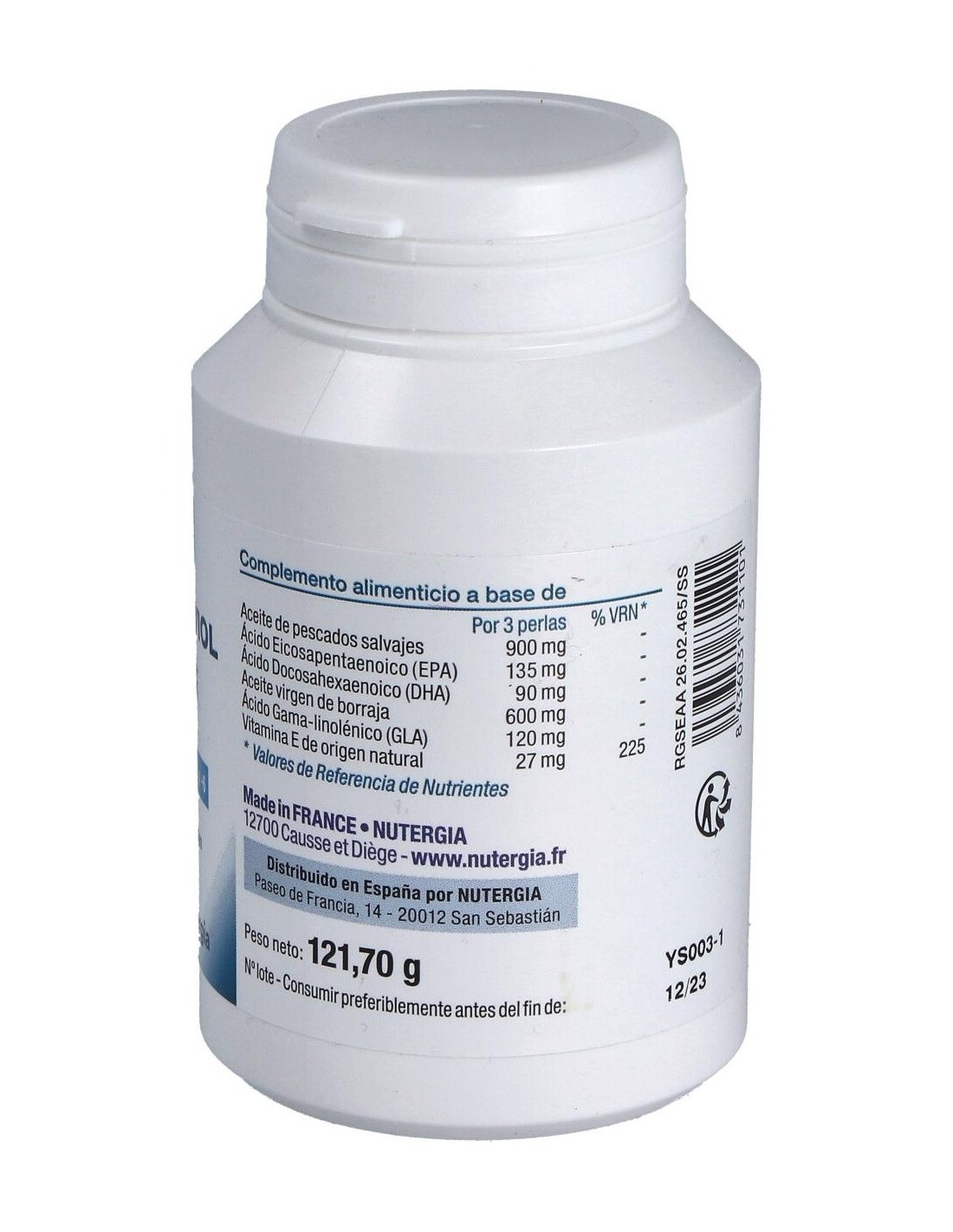 Este producto está elaborado con aceite de pescado cuidadosamente procesado para preservar sus componentes activos. Su formato en perlas contribuye a una administración sencilla y adecuada para quienes prefieren suplementos en esta presentación.