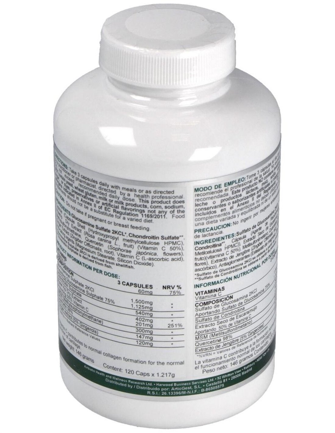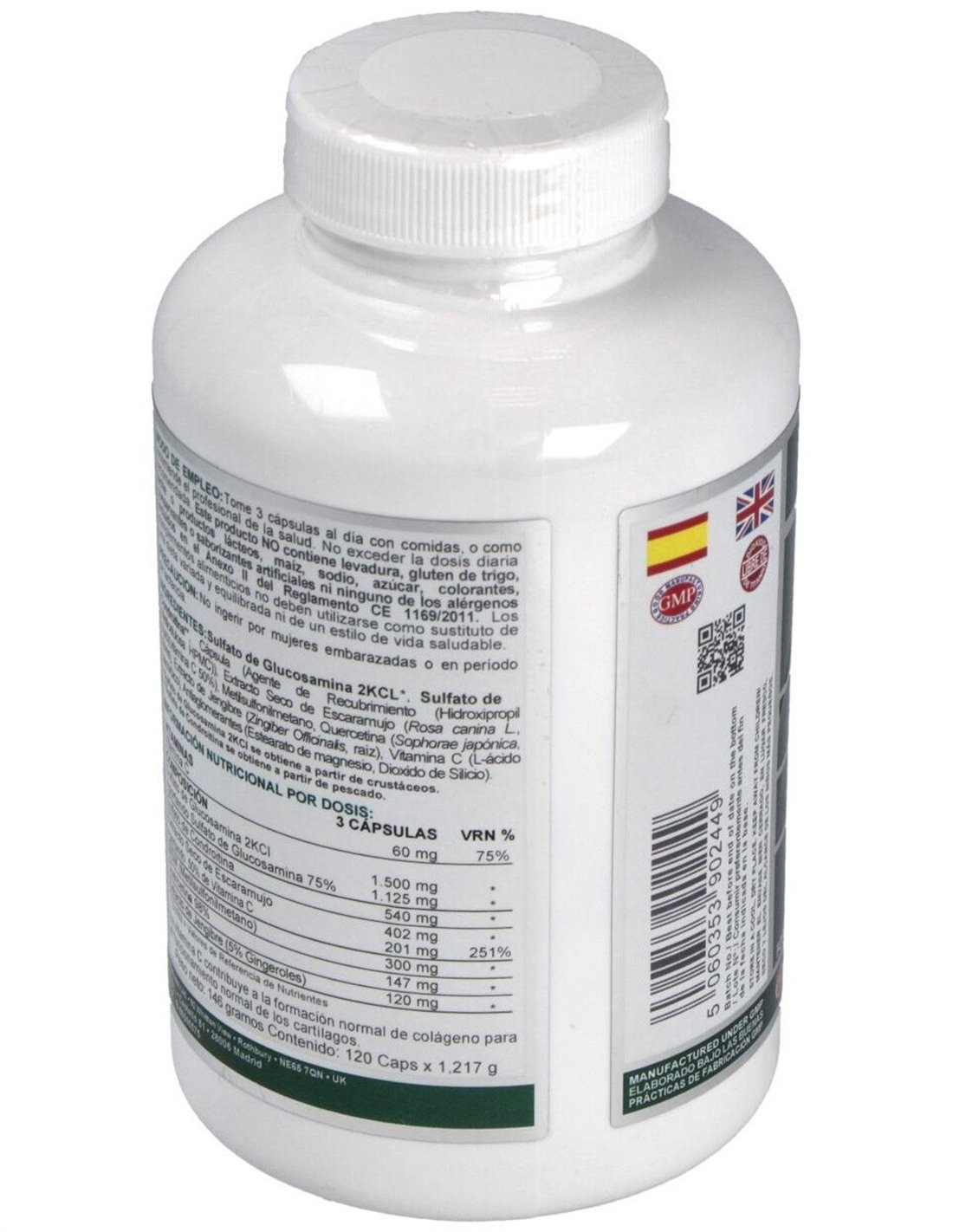 2.000 mg de sulfato de glucosamina 2KCI (1.500 mg de sulfato de glucosamina y 540 mg de sulfato de condroitina).