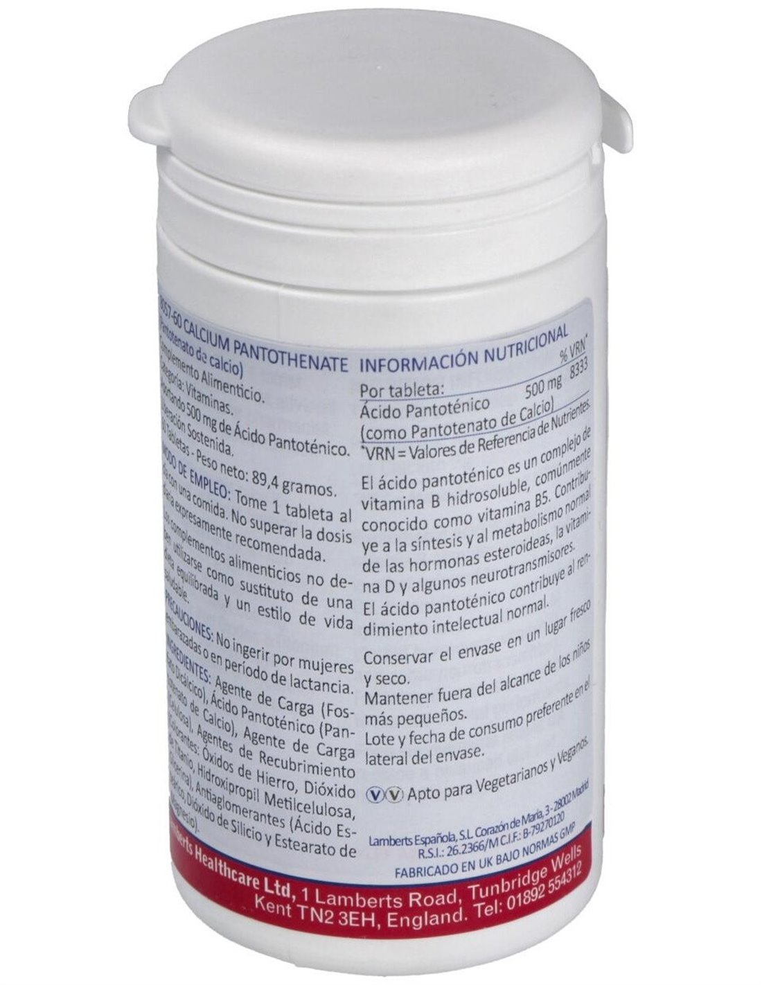 Pantotenato de Calcio 500 mg Lib. Sostenida 60 Tabs. de Lamberts