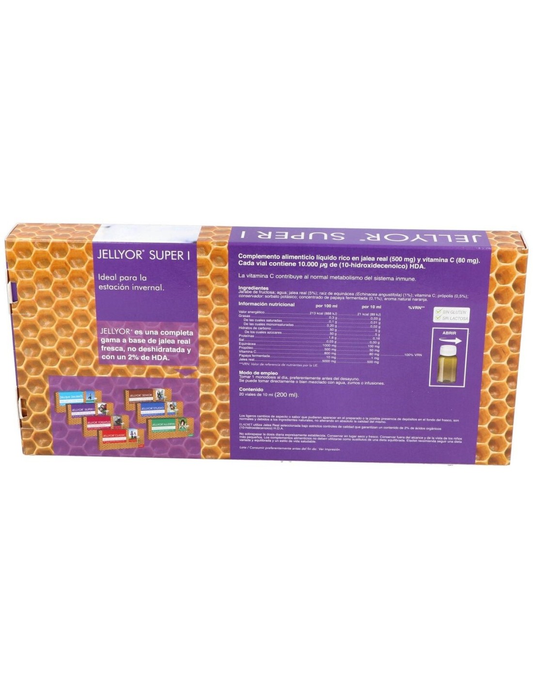 Jellyor super I es un complemento alimenticio líquido que permite aumentar las defensas reforzando el sistema inmunológico. Dentro de su composición, destacan los siguientes ingredientes: