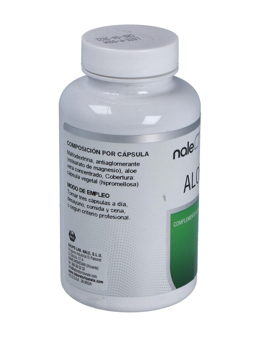 Aloe Vera Concentrado 25 mg/cápsula, equivalente a 5000 mg de jugo de aloe. Antiaglomerante (Estearato de Magnesio). Cápsula Vegetal (Hipromellosa).
