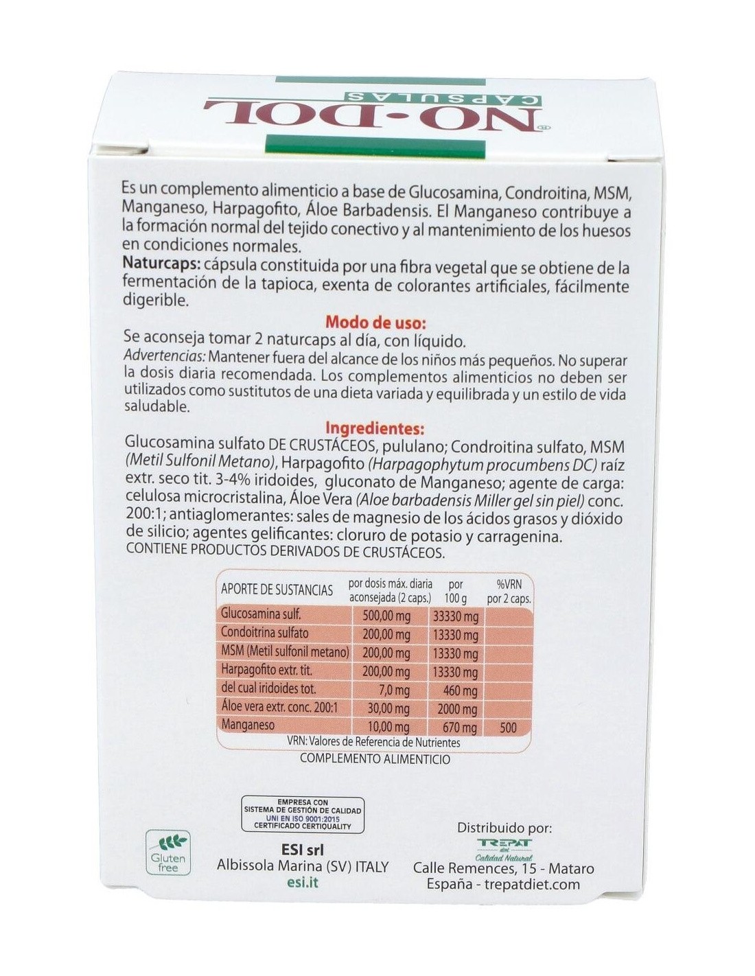 Sulfato de condroitina: Nutre y lubrica las articulaciones. reduce el dolor y mejora la funcionalidad de las uniones óseas en el caso de degeneración articular leve o moderada.