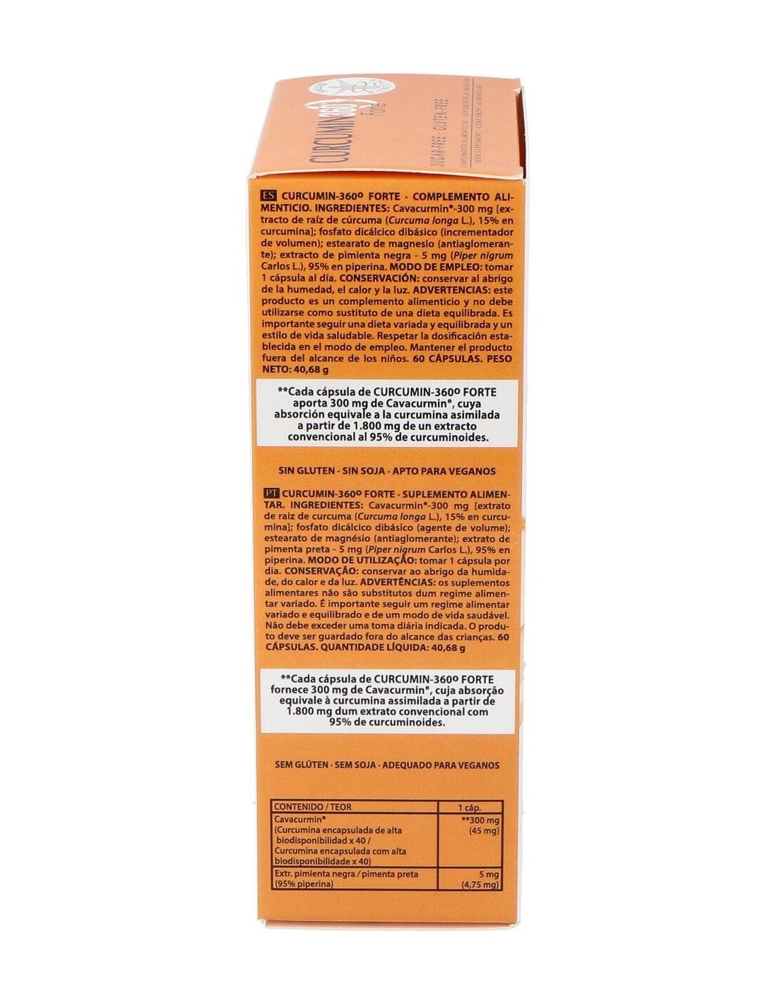 Cavacurmin-300 mg (extracto de raíz de cúrcuma (Curcuma longa L.), 15% en curcumina); fosfato dicálcico dibásico (incrementador de volumen); estearato de magnesio (antiaglomerante); extracto de pimienta negra-5 mg (Piper nigrum Carlos L.), 95% en piperina.