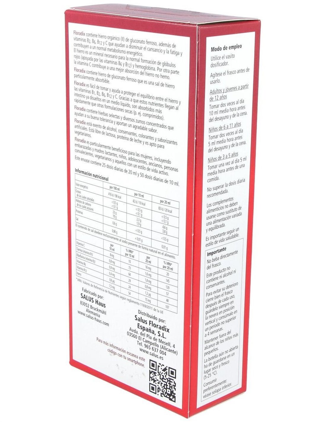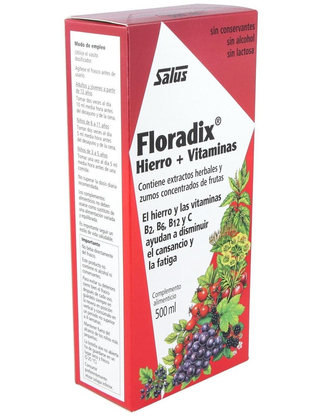 La fórmula de Floradix está especialmente diseñada para optimizar la absorción del hierro, a esto contribuyen los extractos de plantas, jugos de frutas y la vitamina C. La vitamina B12 junto al hierro interviene en la formación de nuevas unidades de glóbulos rojos.