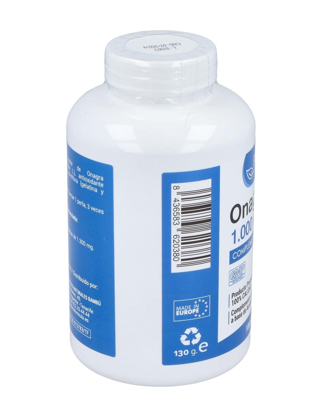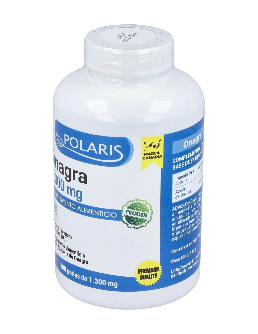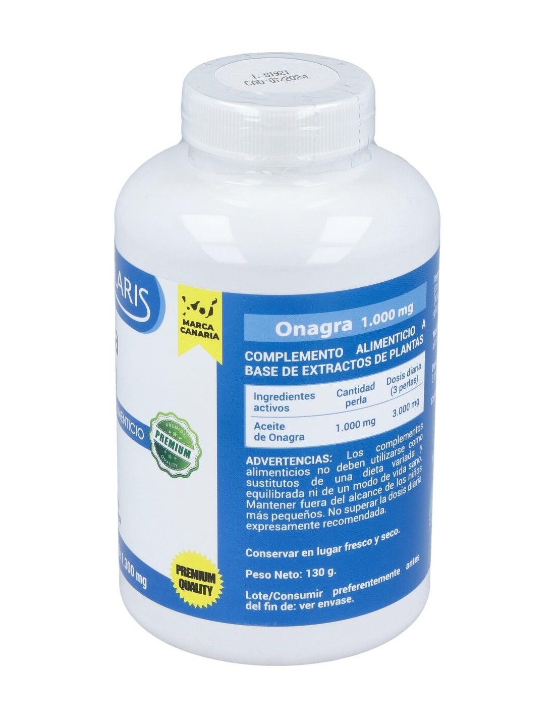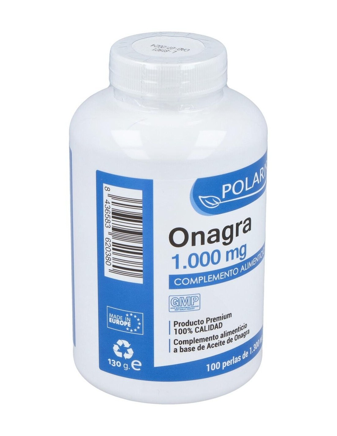 Composición activa por perla:1.000 mg de aceite de onagra.Ingredientes:Aceite de onagra (Oenothera biennis L.), antioxidante (alfa-tocoferol), envoltura (gelatina, glicerina).Modo de empleo:Tomar 1 perla, 3 veces al día.Presentación:Envase de 100 perlas.Recomendaciones y advertencias:No contiene gluten, lactosa ni huevo. No GMO.