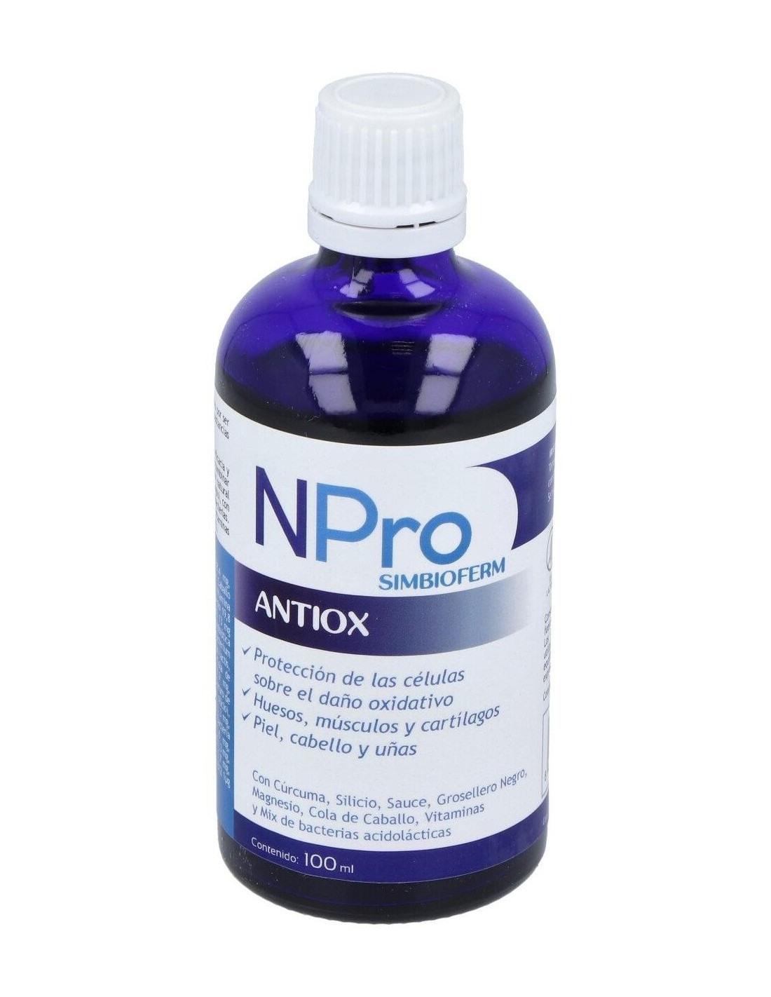 El Npro Antiox 100Ml. es un suplemento antioxidante diseñado para personas que buscan apoyar su bienestar diario, formulado con ingredientes que contribuyen a la protección celular.