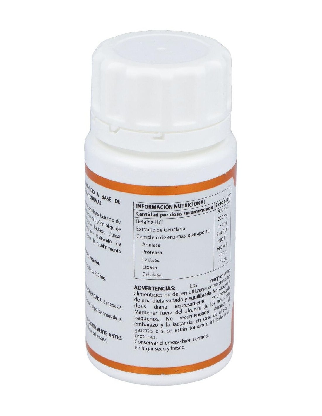 Complejo de enzimas de origen natural que puede ser de utilidad en caso de falta de ácidos y enzimas digestivas, apoyando una normal digestión. Apto para vegetarianos y veganos.