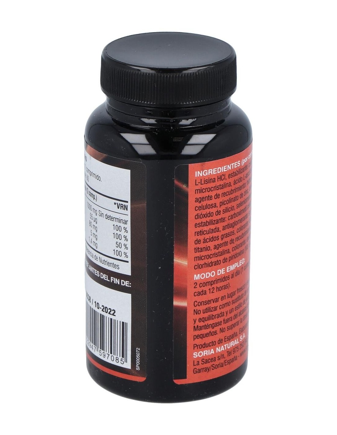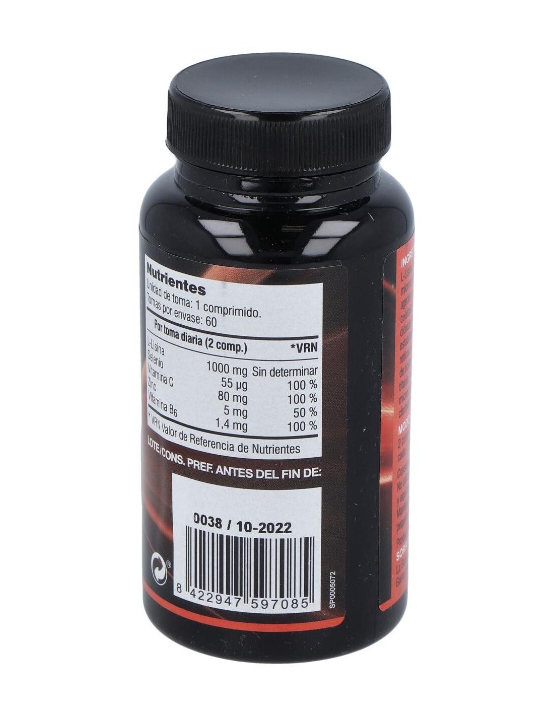 - Cada comprimido contiene L-Lisina, un aminoácido que contribuye a la síntesis proteica y al mantenimiento de tejidos.
