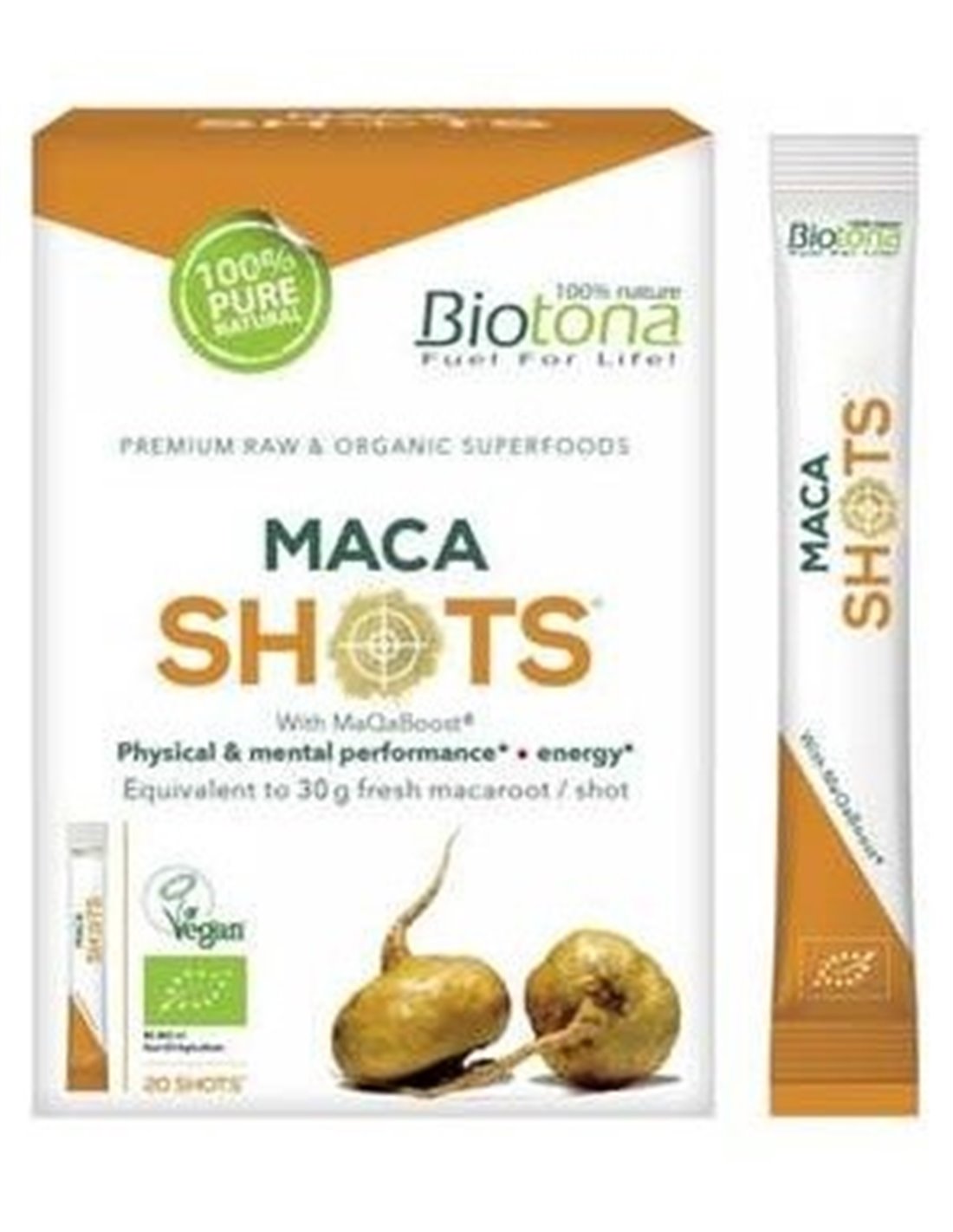 Mezcla única y concentrada compuesta por polvo y extracto (MaQaBoost®) derivado de la raíz del Lepidium meyenii, una planta fuerte y muy resistente que crece a gran altitud (> 4000 m) en las montañas de la cordillera de los Andes. Este ginseng peruano es muy apreciado por el apoyo que brinda sobre el rendimiento físico y mental. También contribuye a la resistencia, resiliencia general, fertilidad y vitalidad. Producto vegano.