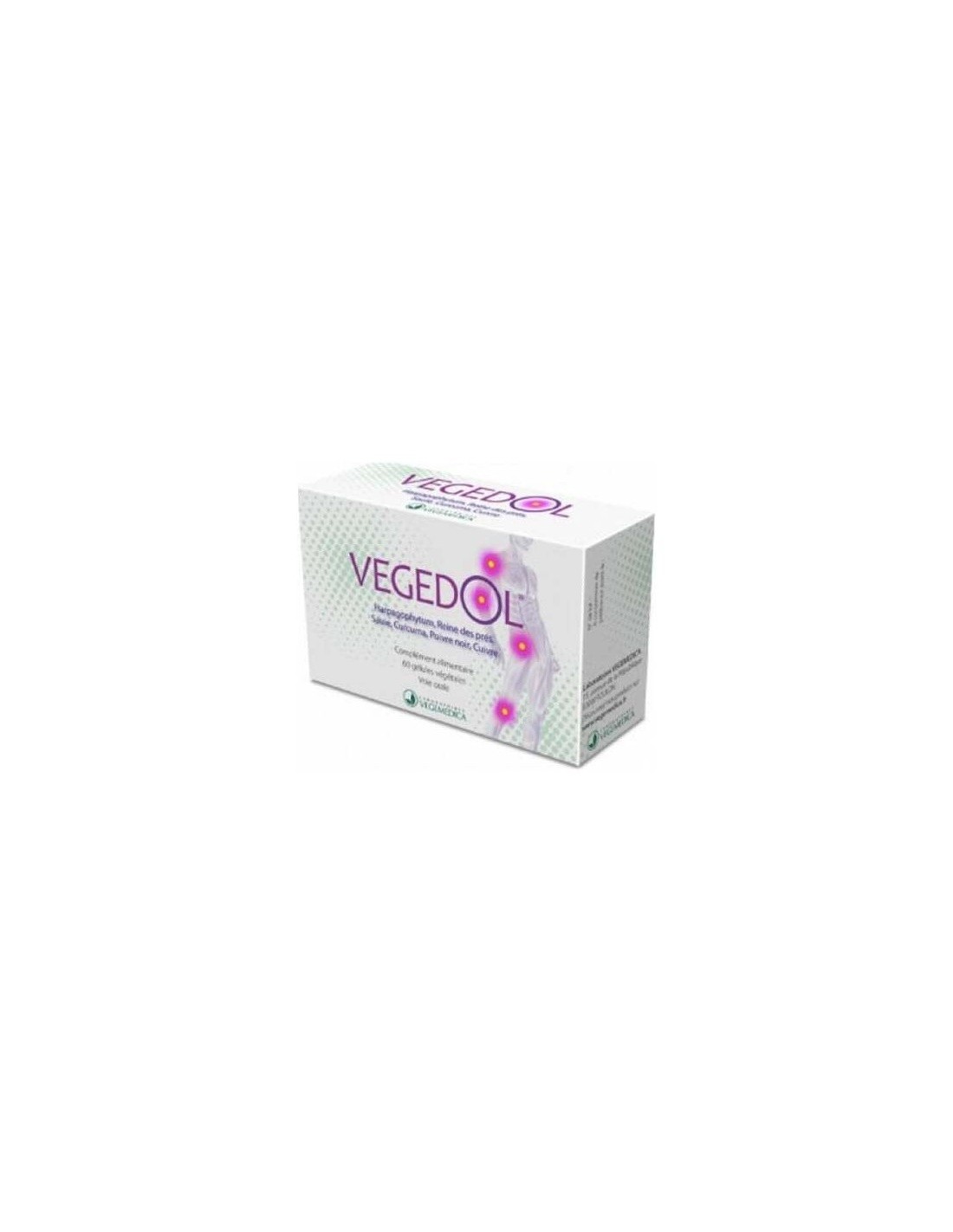 Extracto de Reina del prado (Filipendula ulmaria), extracto de raíces de Harpagofito (Harpagophytum procumbens) con valor comprobado en harpagosidas, cápsula contenedora vegetal: hidroxipropilmetilcelulosa, extracto de corteza de Sauce (Salix alba) con valor comprobado en salico, extracto de raíces de Cúrcuma (Curcuma longa) con valor comprobado en curcumina, extracto de pimienta negra (Piper nigrum) con valor comprobado en piperina, anti aglomerante: sal de magnesio de ácidos grasos, gluconato de cobre.