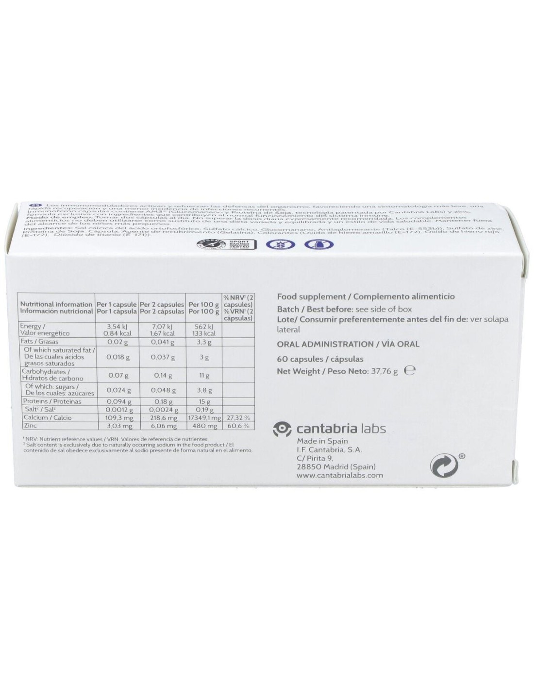 Su fórmula exclusiva a base de de AM3® (glucomanano y proteína de soja), tecnología patentada por Cantabria Labs, y Zinc, ingrediente que contribuye al normal funcionamiento del sistema inmune. Sin lactosa y sin gluten.