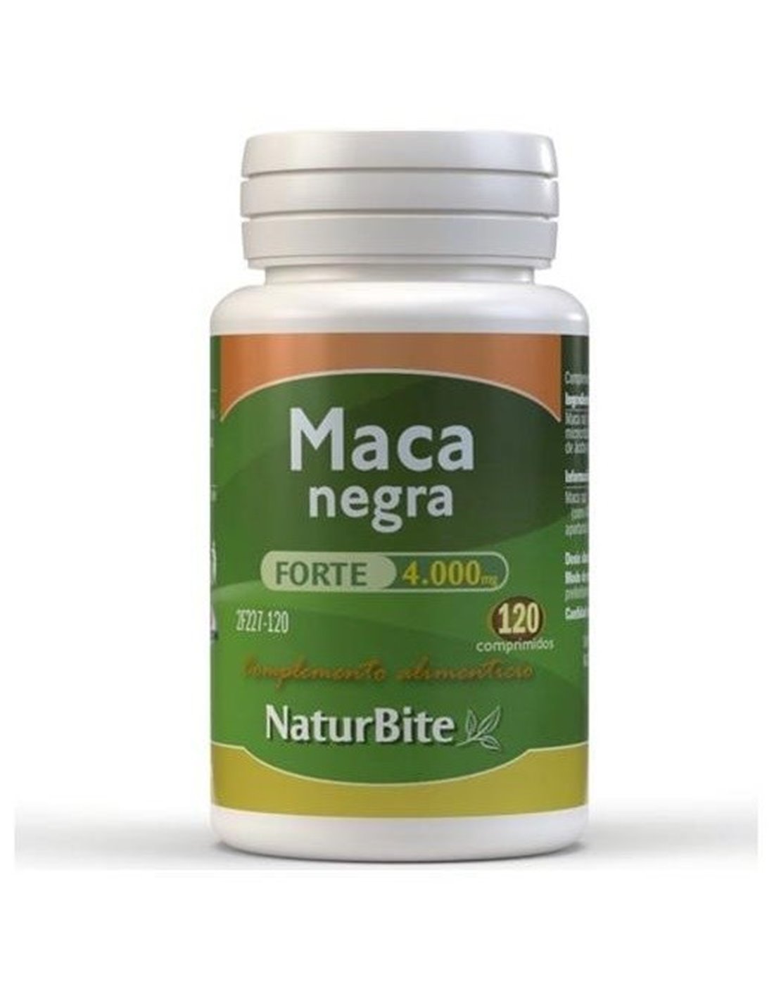 Composición activa por comprimido:400 mg de extracto 10:1 de maca raíz (4000 mg de raíz de planta completa.).Ingredientes:Agente de carga (Celulosa microcristalina, Fosfato de Calcio), Maca raíz (Lepidium meyenil), Antiaglomerantes (Estereato magnesio, Dióxido de silicio).Modo de empleo:Tomar 1 comprimido al día, preferiblemente con alimentos.Presentación:Envase de 120 comprimidos.