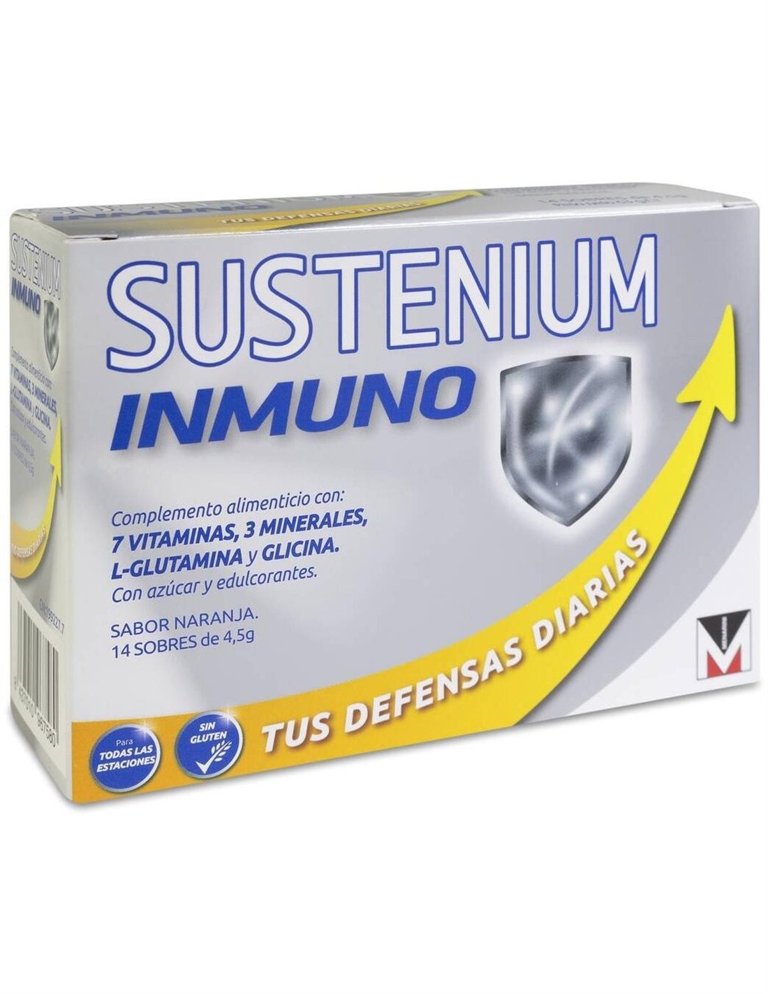 Contiene vitaminas B1, B2, B6 y B12, Ácido pantoténico, Niacina, Vitamina C, Cobre, Zinc, Manganeso, Glutamina y Glicina. El Zinc, el Cobre, las vitaminas C, B6 y B12 contribuyen al funcionamiento normal del sistema inmunitario. Las vitaminas B1, B2, B6 y B12, el Ácido pantoténico y la Niacina ayudan al metabolismo energético normal. El Cobre, el Zinc, el Manganeso y las vitaminas C y B2 contribuyen a la protección de las células contra el daño oxidativo. Sabor naranja.