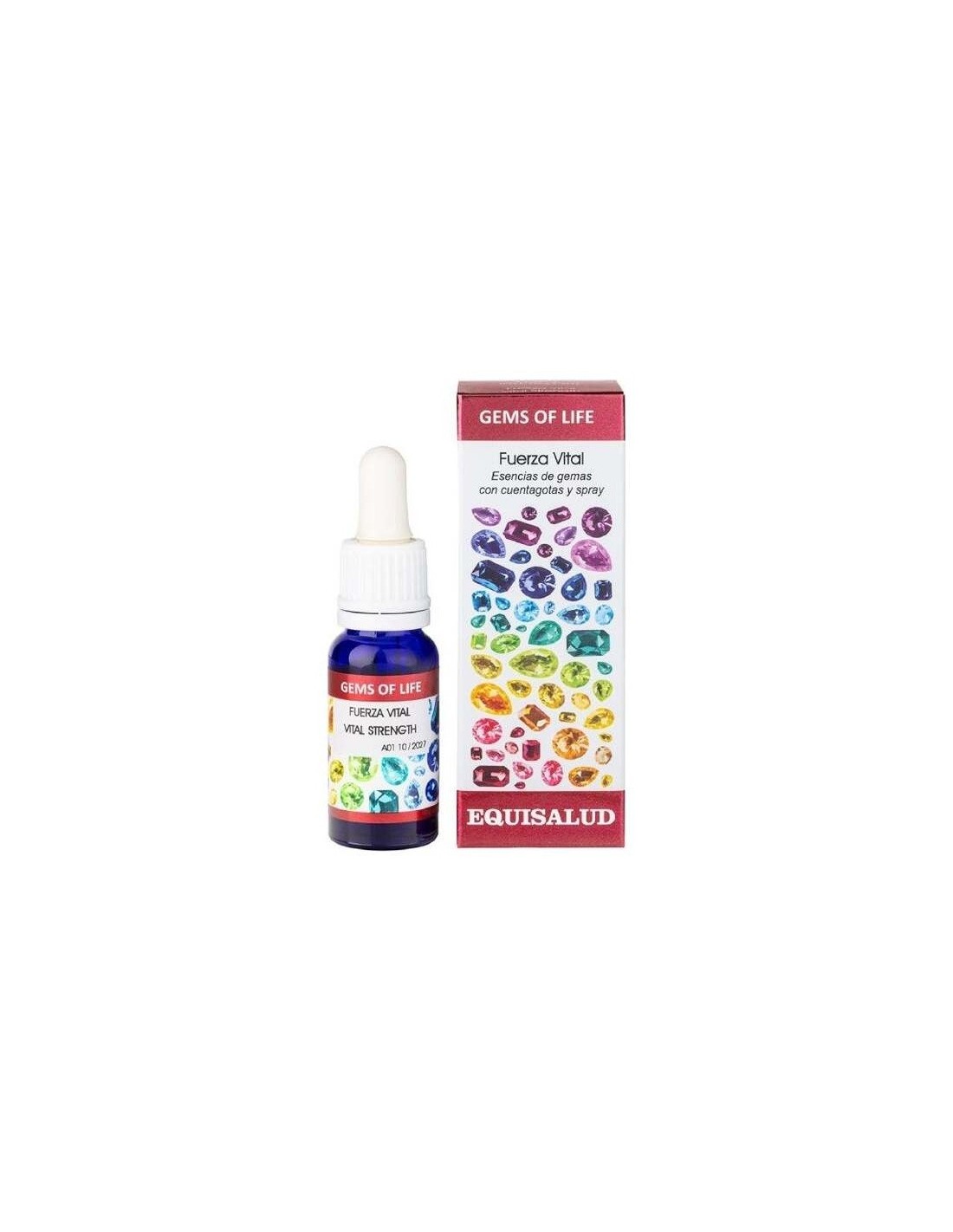 Gems of Life Fuerza Vital es un tónico y regenerador energético, preparado a partir de esencias de gemas y cristales, indicado para depurar, incrementar y mejorar la calidad de las reservas de energía vital. Armoniza y refuerza las energías físicas, emocionales y mentales.Contribuye al incremento de la reserva de energía ancestral o energía vital hereditaria y fortalece los procesos de consolidación y enraizamiento. Facilita de este modo la estructuración profunda del yo y el sentimiento de pertenencia. Favorece la fisiología energética de la resiliencia, la serenidad, la protección, y la desintoxicación que contribuye a la protección y limpieza de energías electromagnéticas o psíquicas perturbadoras.Equilibra la circulación de energía en el biocampocampo de energía que rodea e Inter-penetra el cuerpo y ayuda a corregir las pérdidas o fugas de energía relacionadas con los grandes traumas psíquicos o físicos y sus procesos de recuperación.Indicaciones: