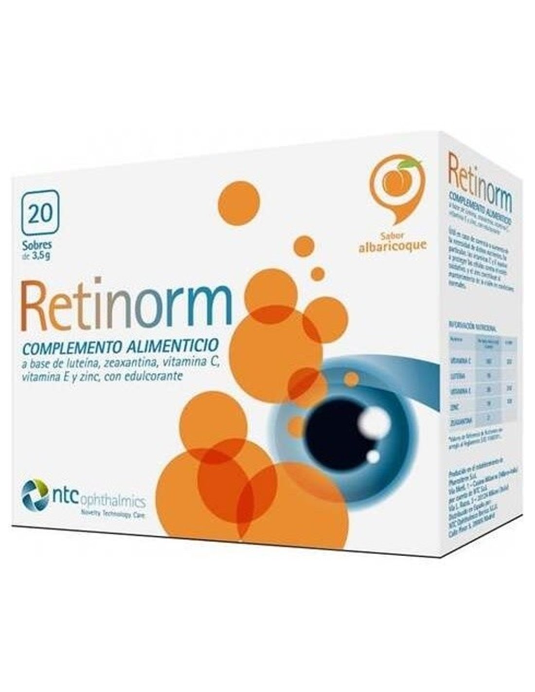 Un complemento alimenticio que se compone de vitamina C, vitamina E, luteína, zinc y zeaxantina. Estos componentes ayudan al normal funcionamiento de la visión. Útil en caso de carencia o aumento de la necesidad de dichos nutrientes. En particular, las vitaminas C y E ayudan a proteger las células del estrés oxidativo, el zinc contribuye al mantenimiento de la visión en condiciones normales. El cobre ayuda al funcionamiento normal del sistema nervioso y la protección de las células contra el estrés oxidativo. Sobres con sabor a naranja.
