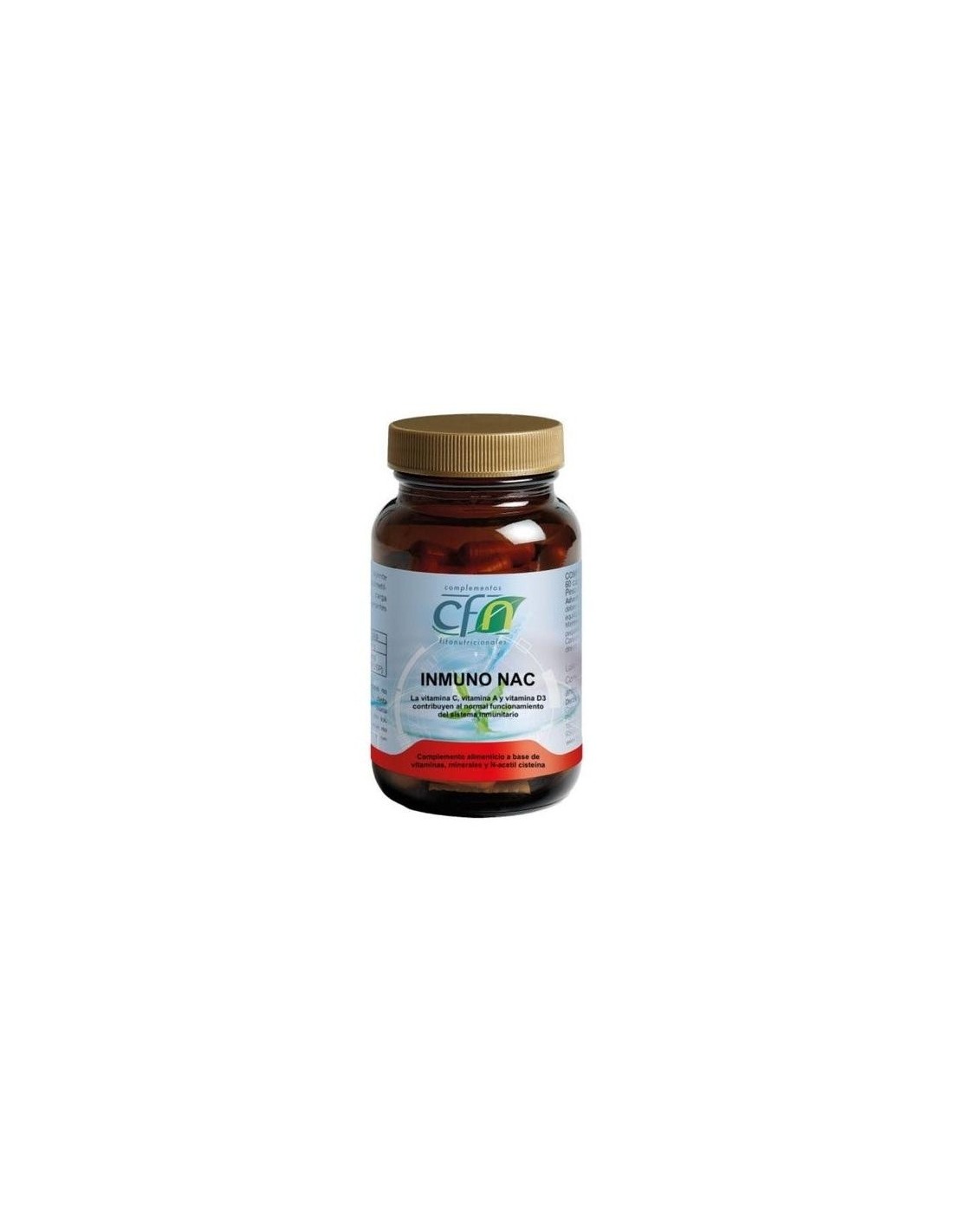 Inmuno NAC es un complemento alimenticio que ayuda a reforzar las defensas del organismo en procesos en los que pueden estar debilitadas, al contener vitaminas, folato, zinc, selenio y NAC que mejora la respuesta antioxidante del organismo.Principios activos: